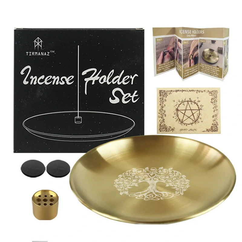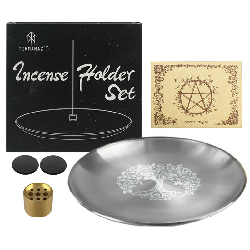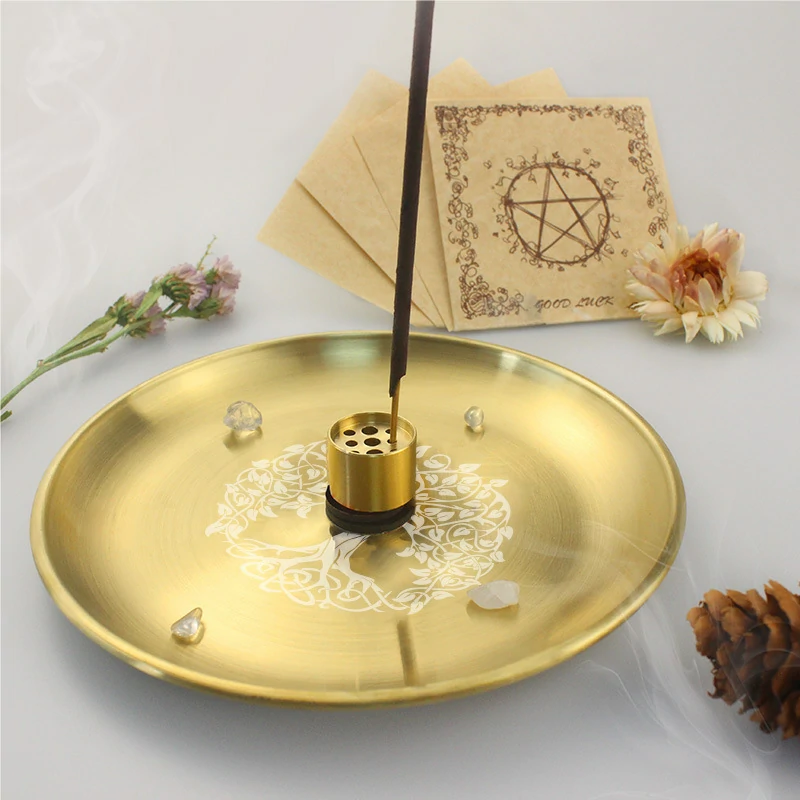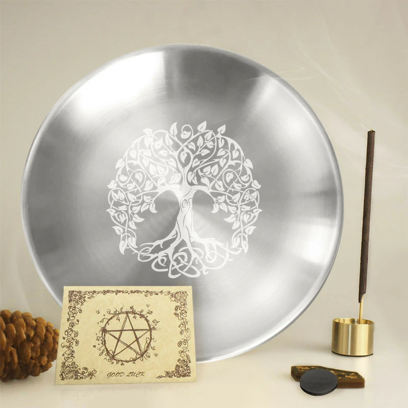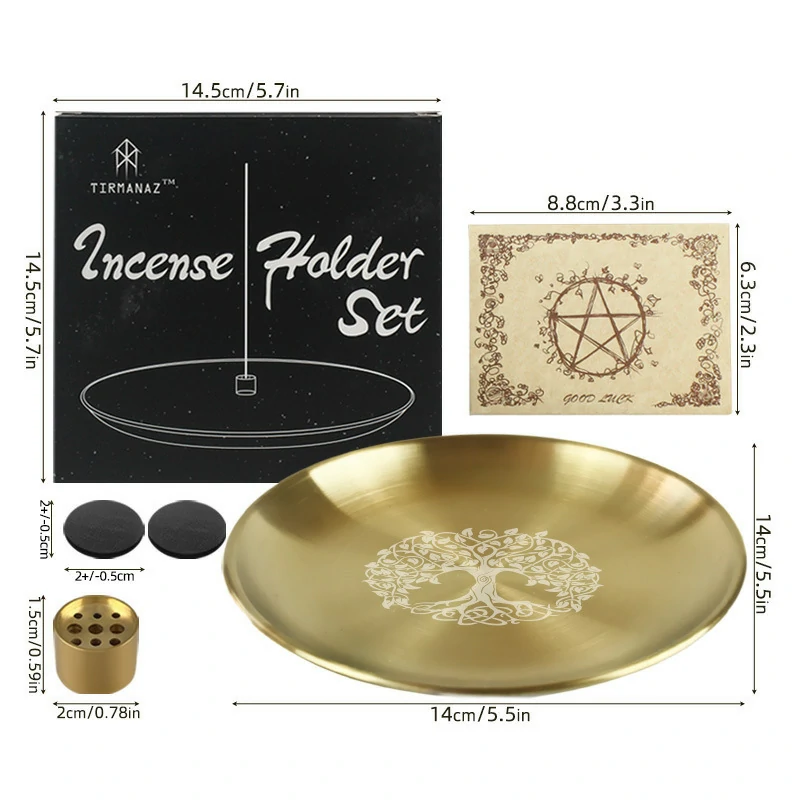 14cm Life Tree Steel Plate Nine Hole Incense Insertion Tray Metal Candlestick Incense Burner Ceremony Crystal Plate Altar Ornament