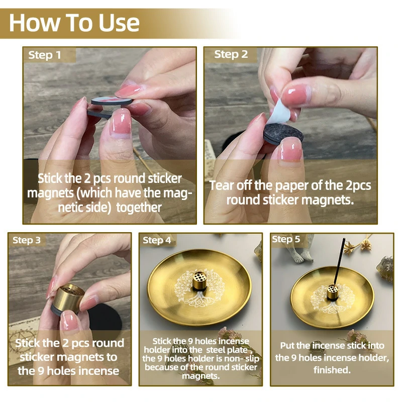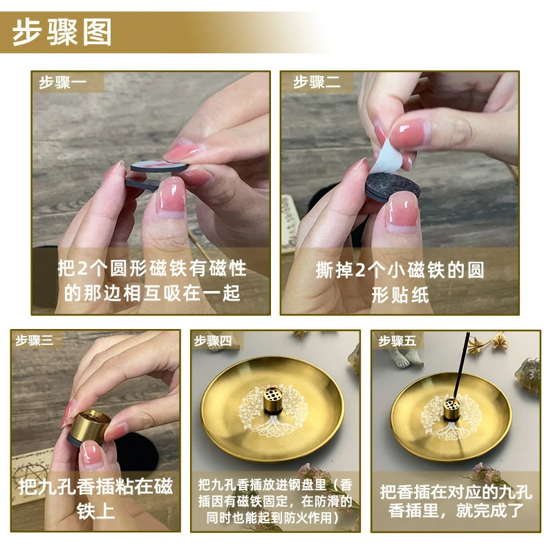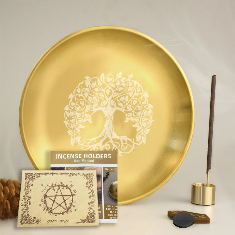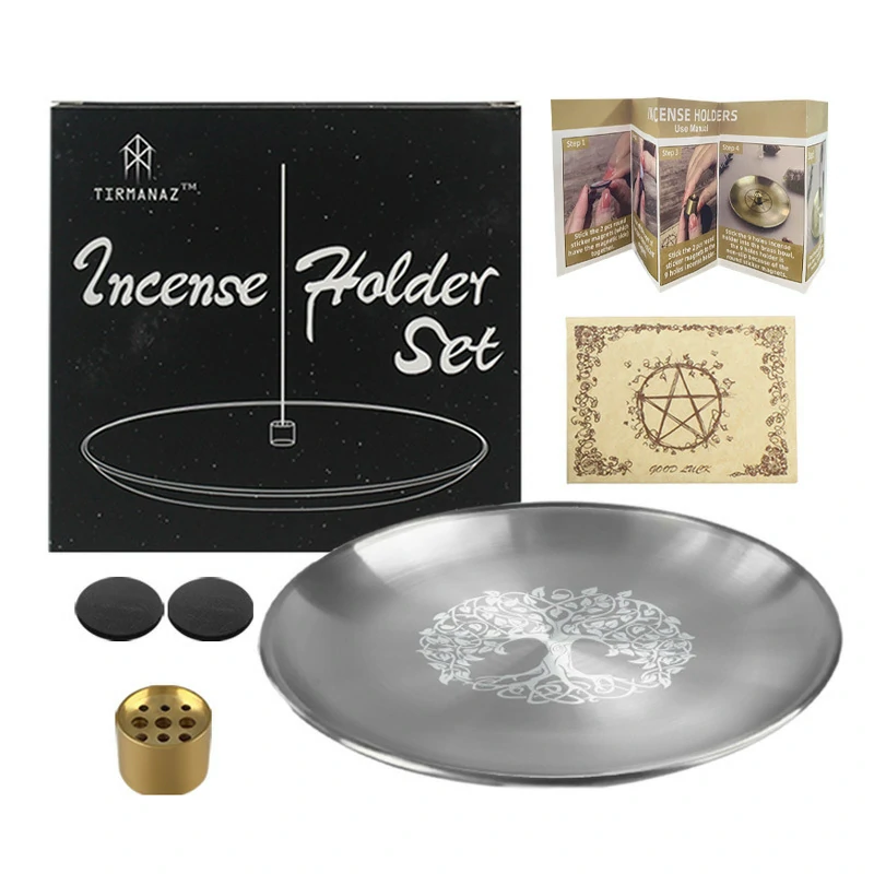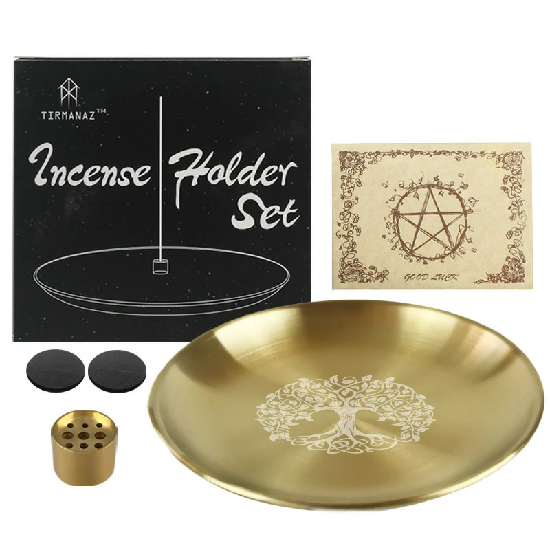 14cm Life Tree Steel Plate Nine Hole Incense Insertion Tray Metal Candlestick Incense Burner Ceremony Crystal Plate Altar Ornament