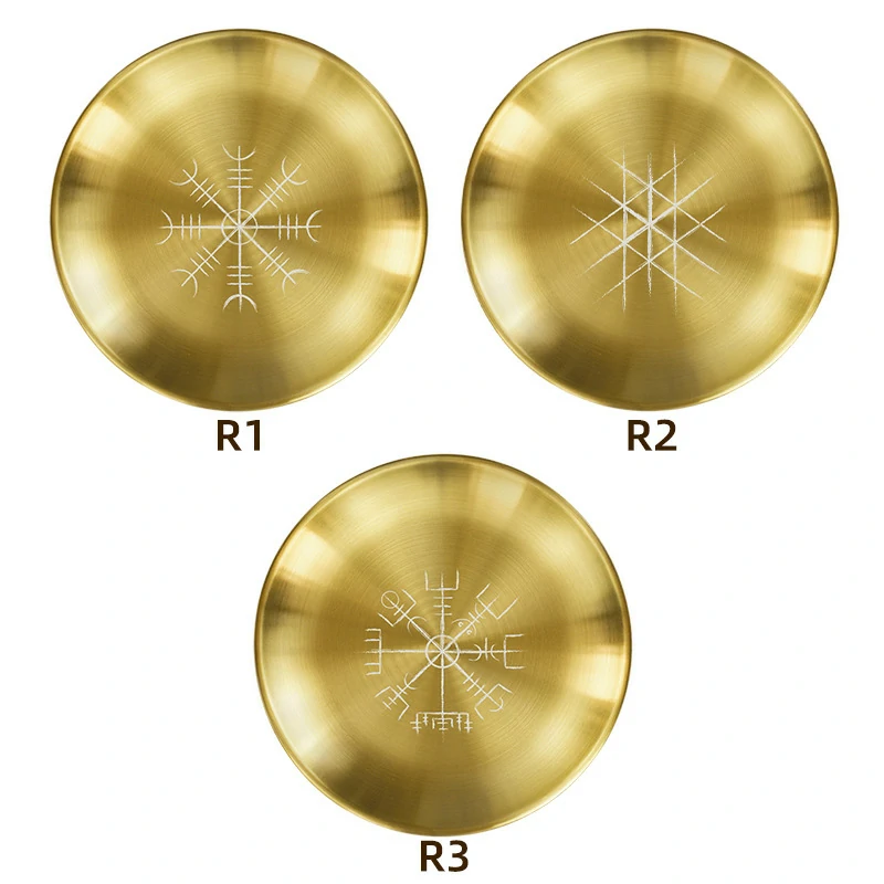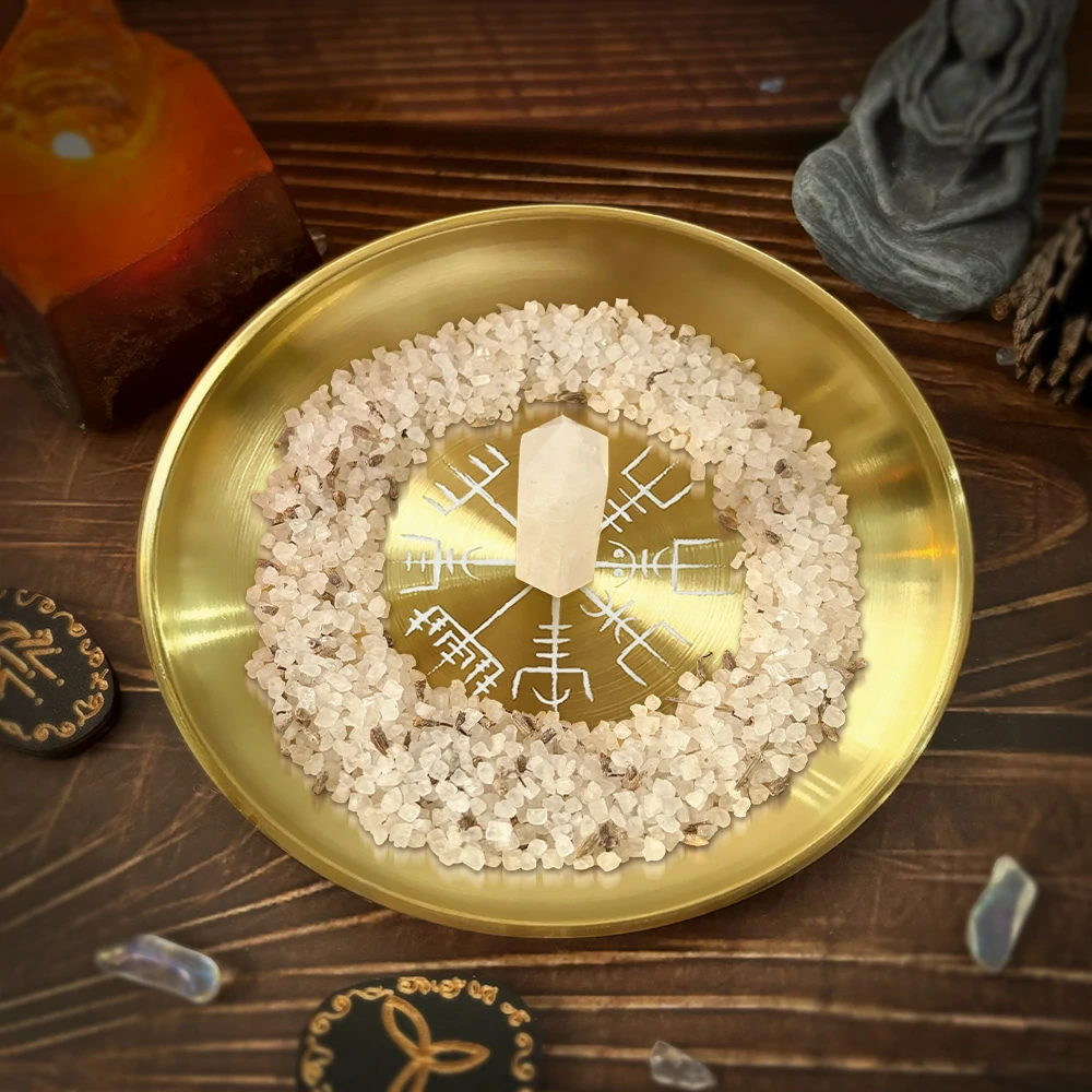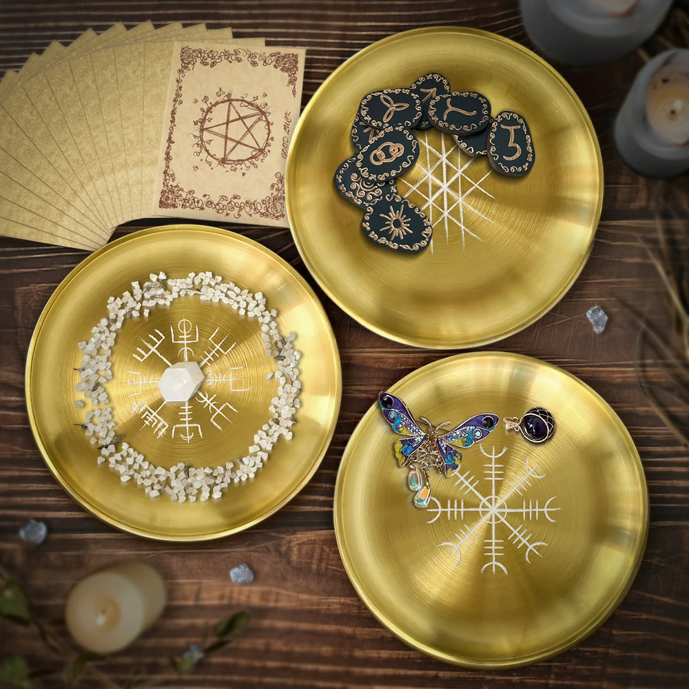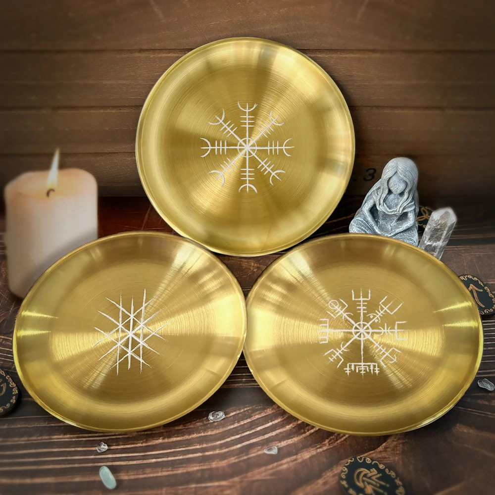 14cm stainless steel tray, candle holder tray, Wyrd metal carving steel tray, crystal stone dice storage tray Viking