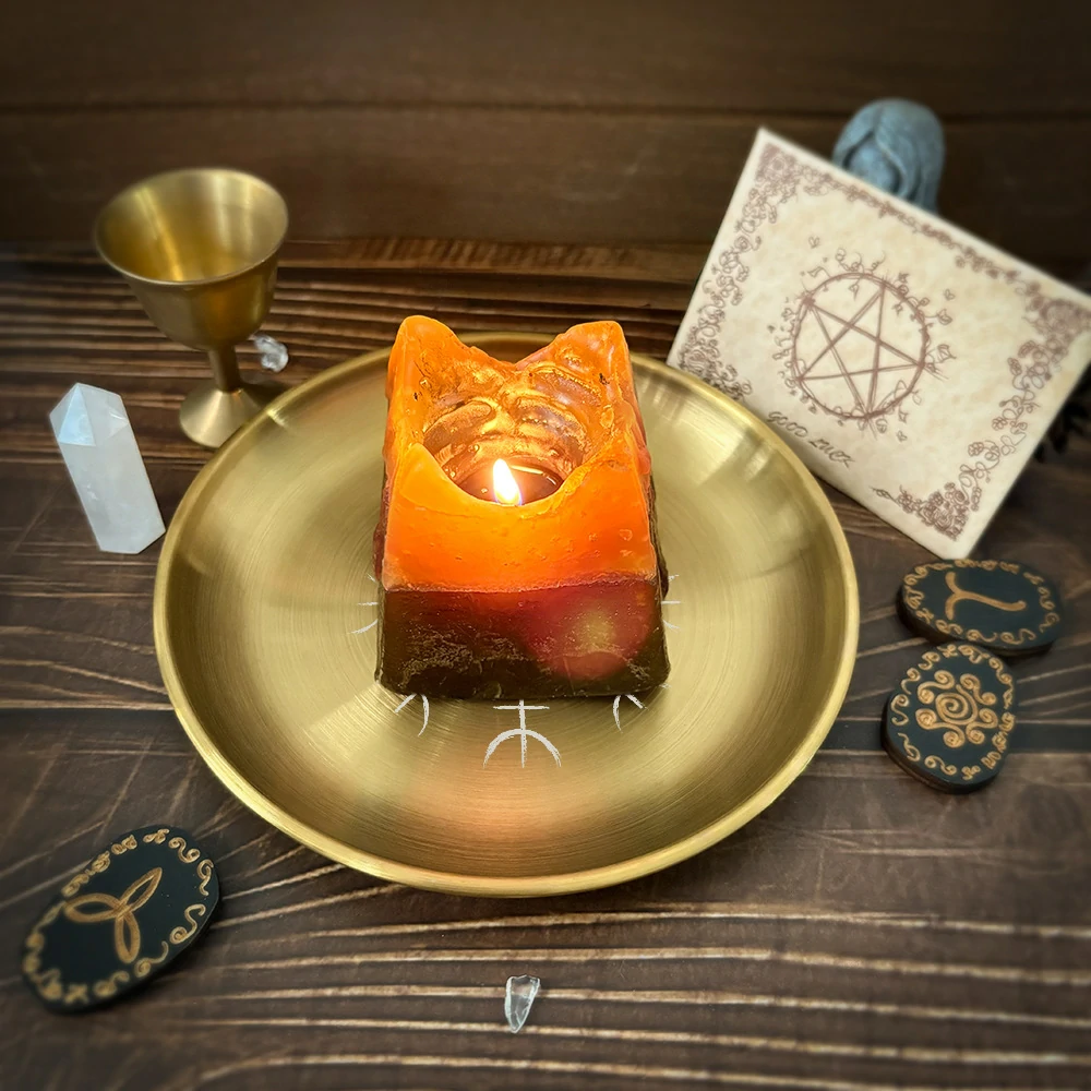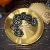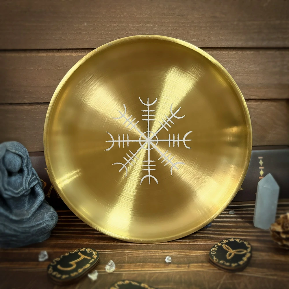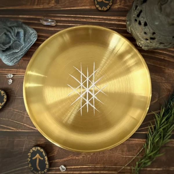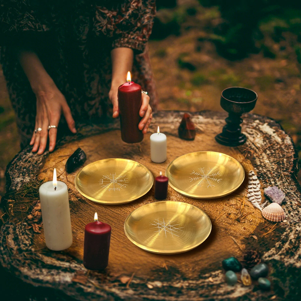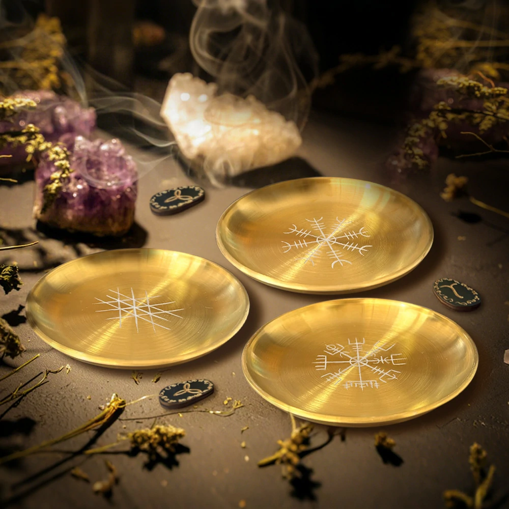 14cm stainless steel tray, candle holder tray, Wyrd metal carving steel tray, crystal stone dice storage tray Viking