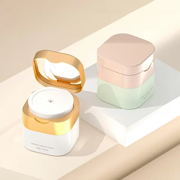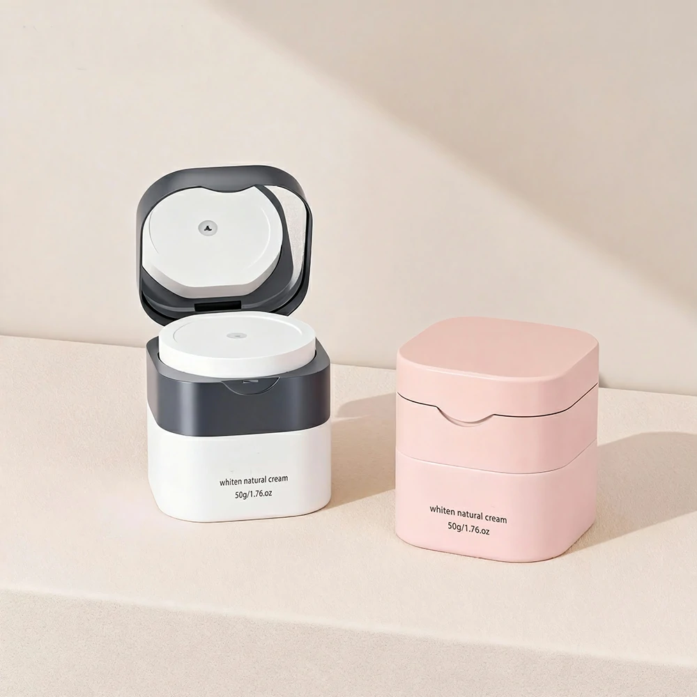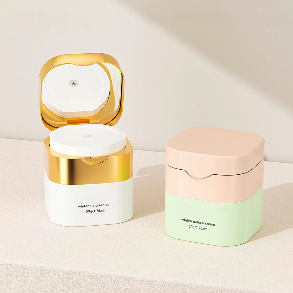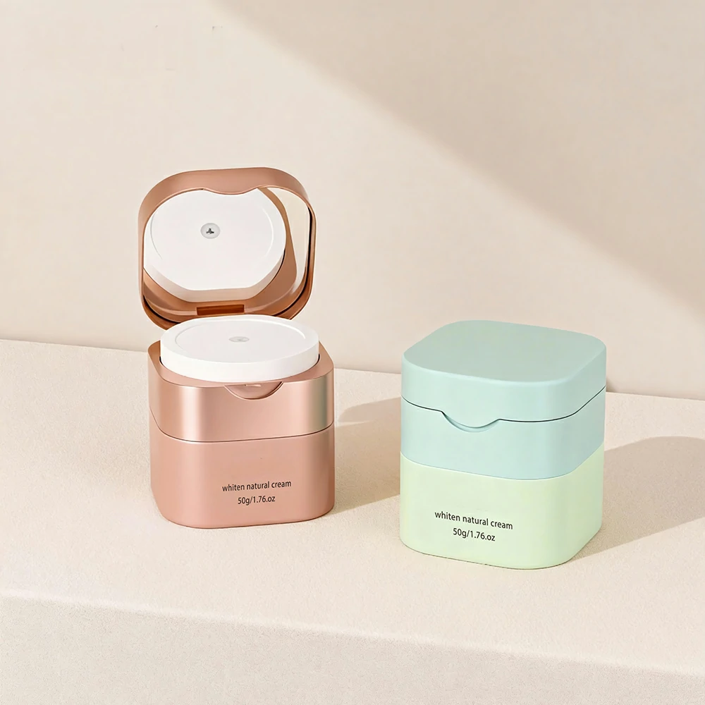 50g clamshell cream squeeze jar customized vacuum cream bottle with mirror square cosmetic bottle packaging