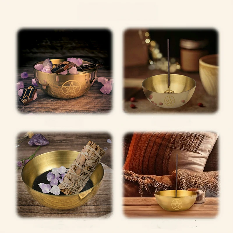 8cm 10cm pentagram bronze bowl aromatherapy brass bowl incense burner three-phase monthly supply bowl metal expansion stone decorative bowl ceremony