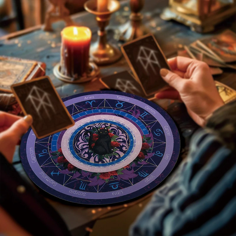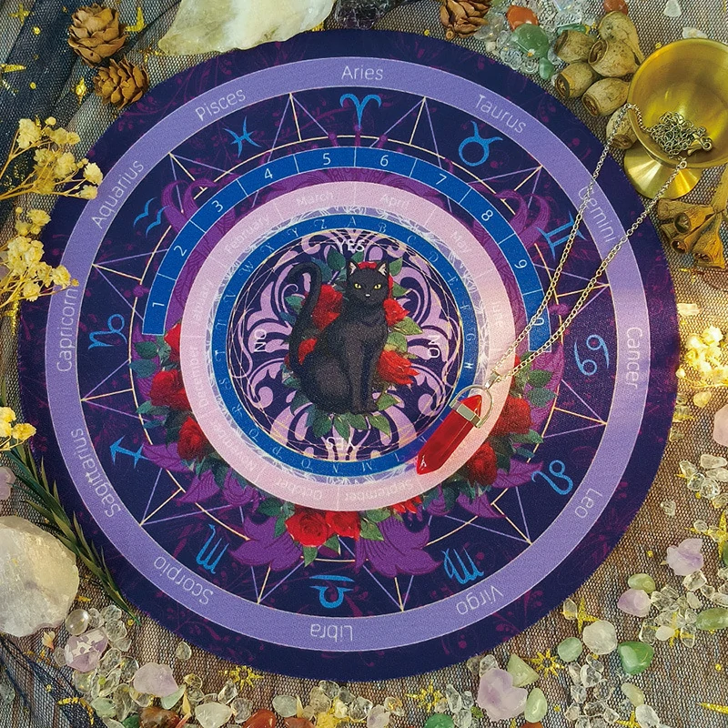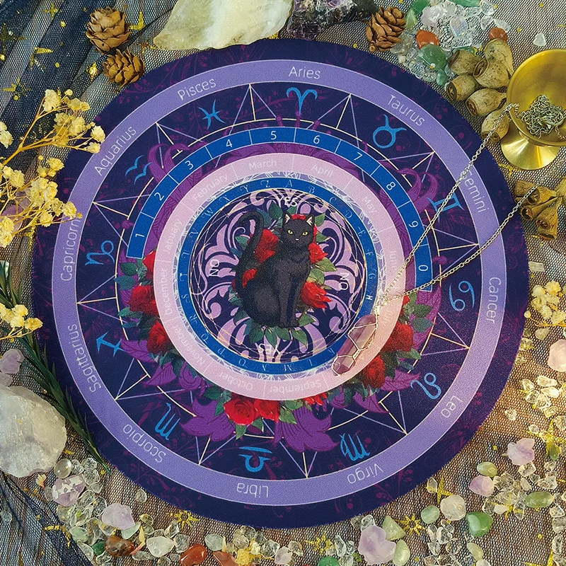 Black Cat Spirit Mat, Twelve Constellations Decision Mat, Rubber Mouse Mat, Tarot Card Mat, Decorative Mat Pendulum