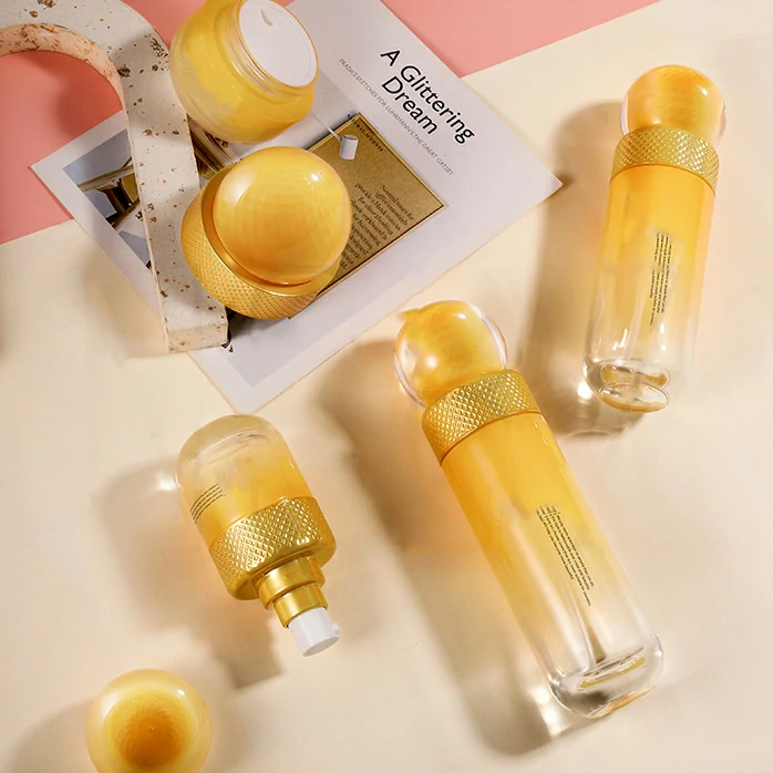 Cosmetic glass bottle packaging material 100ml spherical cap toner bottle press lotion bottle 50g face cream cream empty bottle