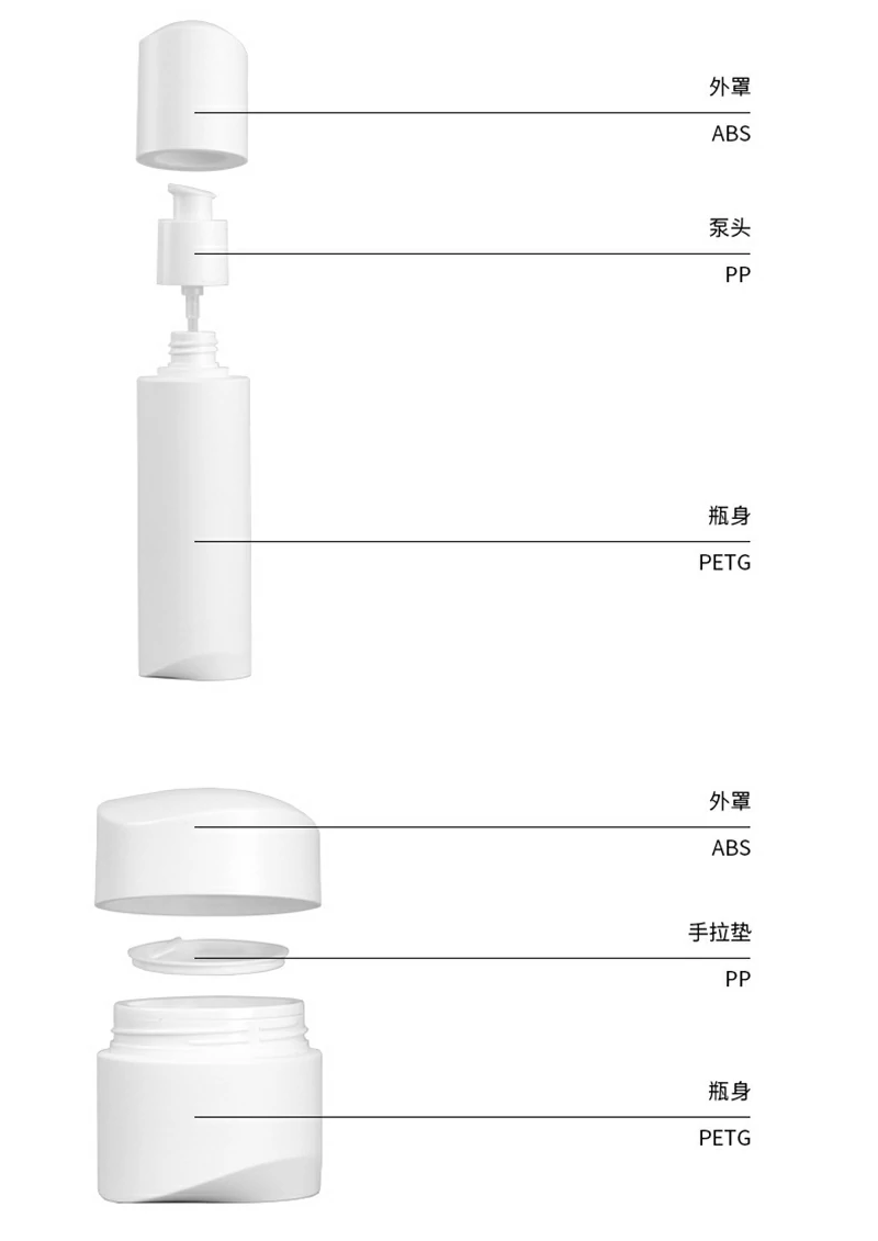 Custom cosmetic set bottle Plastic PETG pump head Press 30-100ml lotion bottle 50g cream bottle