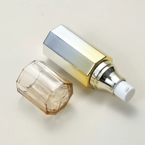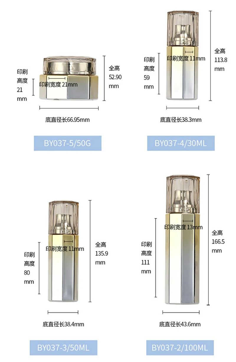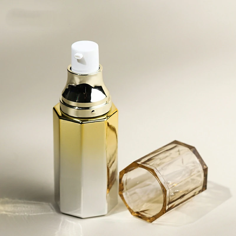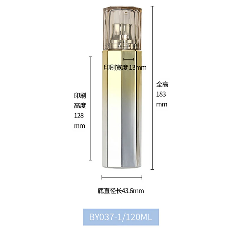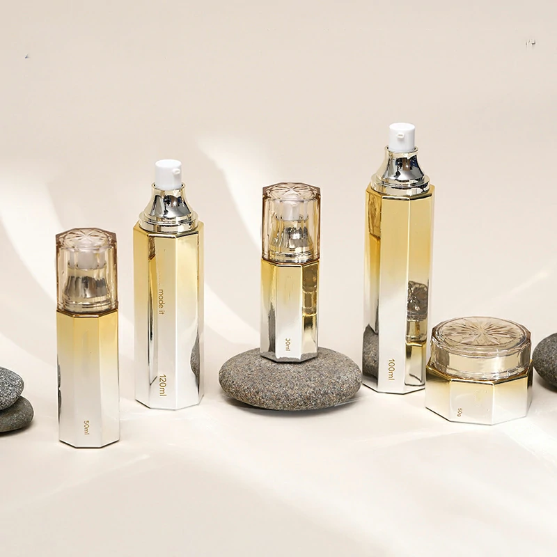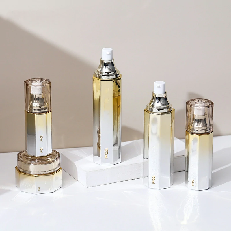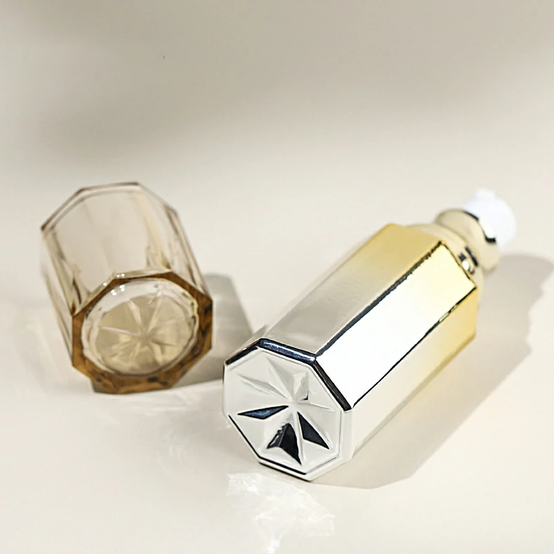 Custom hexagonal glass lotion bottle 50g gradual yellow cream bottle 100-120ml electroplating pump bottle