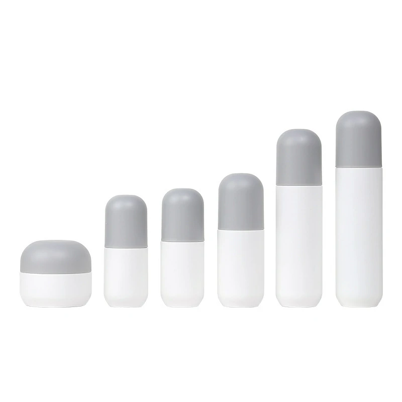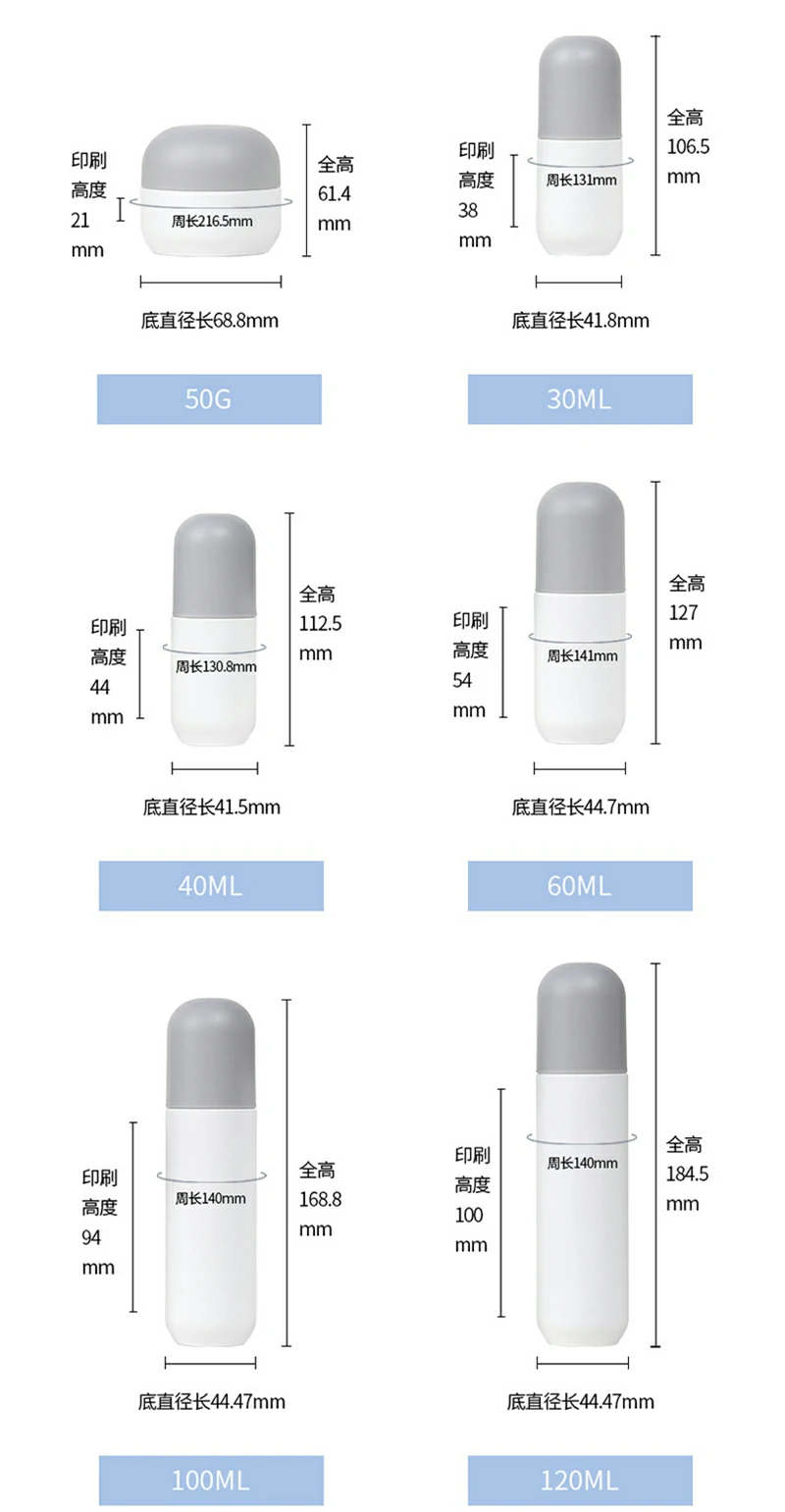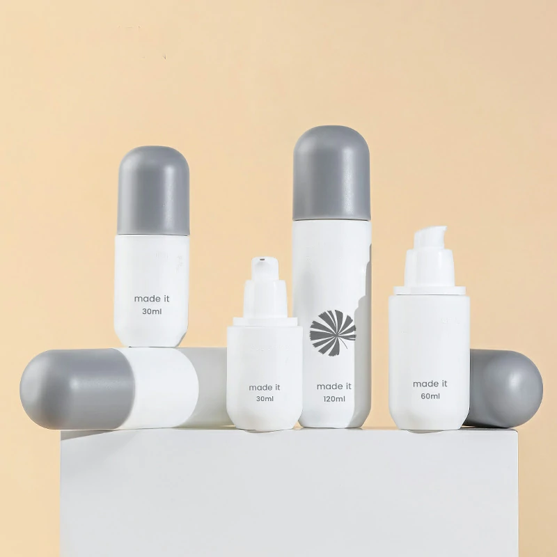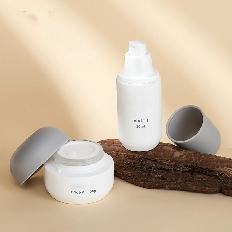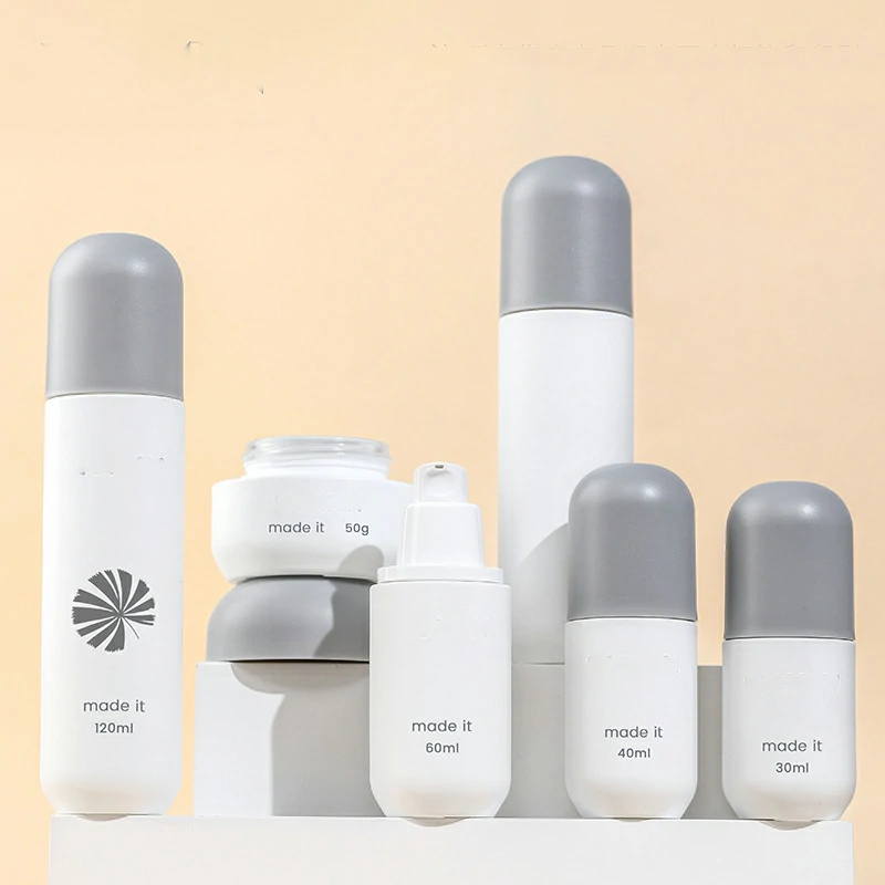 Custom round grey cap set bottle 60-120ml white lotion bottle 30g round cream bottle round bottom glass bottle