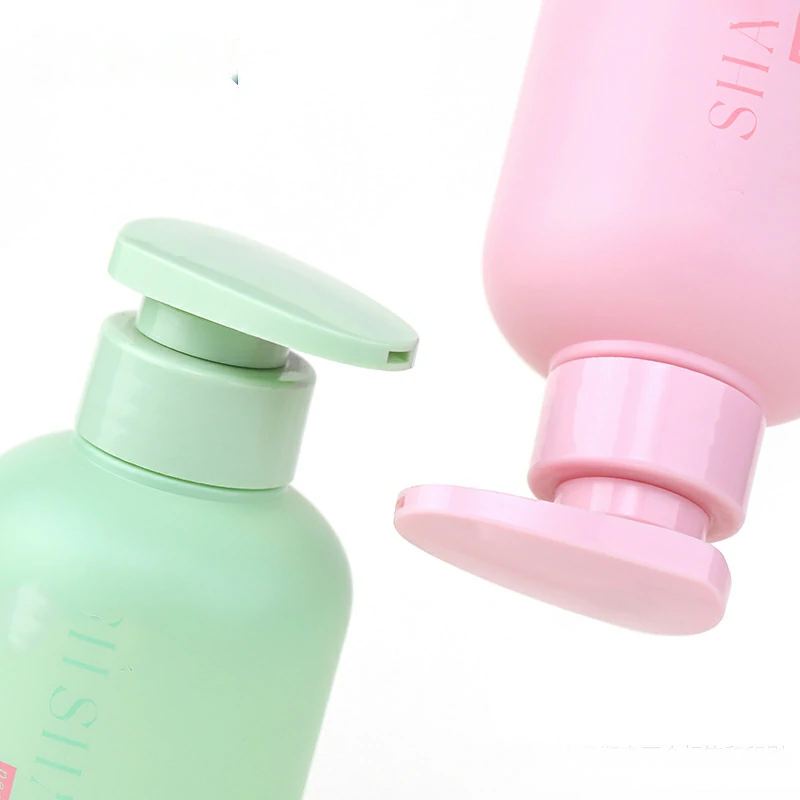 Customized color 300ml pink round shoulder PET shampoo bottle 500ml macaron shampoo bottle pressure pump bottle