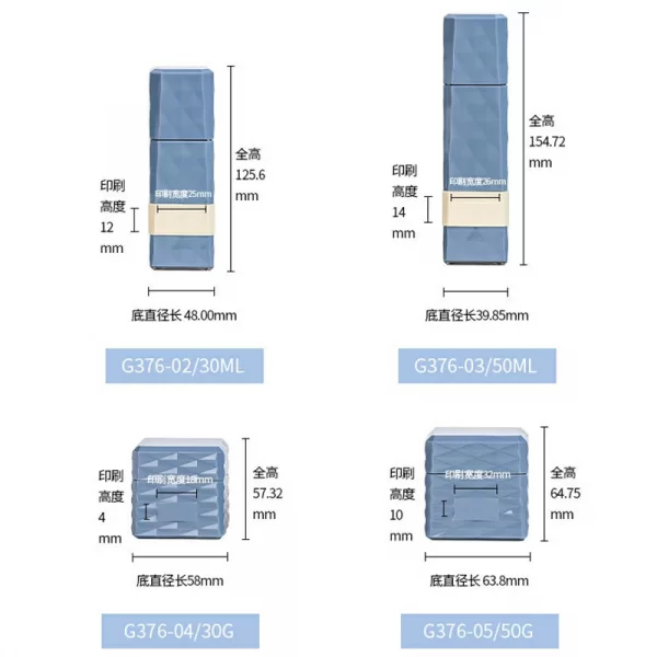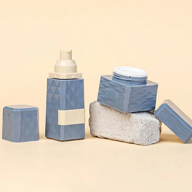 Customized packaging materials 30-50ml blue acrylic lotion bottle 30g square cream bottle subpackage set bottle