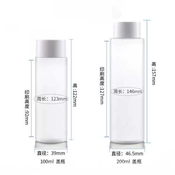 Customized plastic white Fahrenheit cap bottle 100ml frosted hydrosol bottle 200ml toner bottle divided into bottles