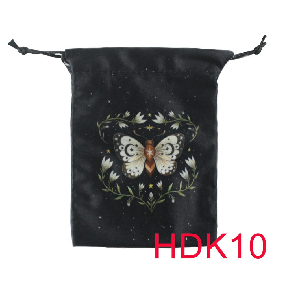 Double sided color printed velvet bag, Christmas butterfly lace velvet table bag, herbal quick pocket, animal tarot card bag