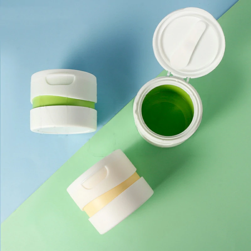 Face cream sub bottled, high-grade cosmetics packaging, wide mouth bottle, facial mask bottle, double-layer plastic clamshell cream bottle, 100g
