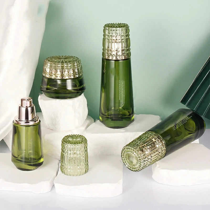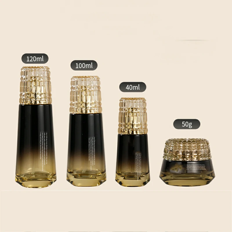 High grade diamond thick bottom skin care product set glass separate bottle diamond water lotion bottle essence liquid lady cream empty bottle
