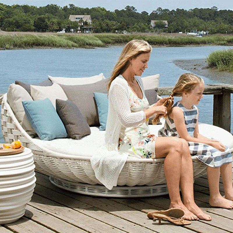 The backrests and armrests showcase precision-crafted grid-pattern rope weaving, offering both visual texture and structural flexibility for comfortable outdoor lounging. - Breathable All-Weather Materials