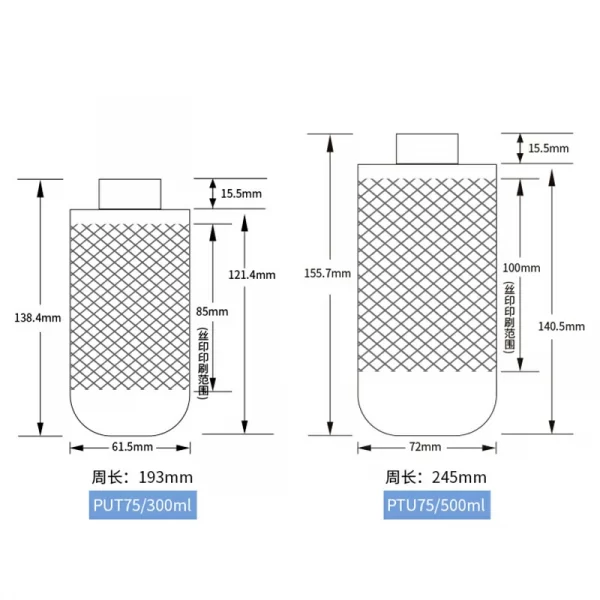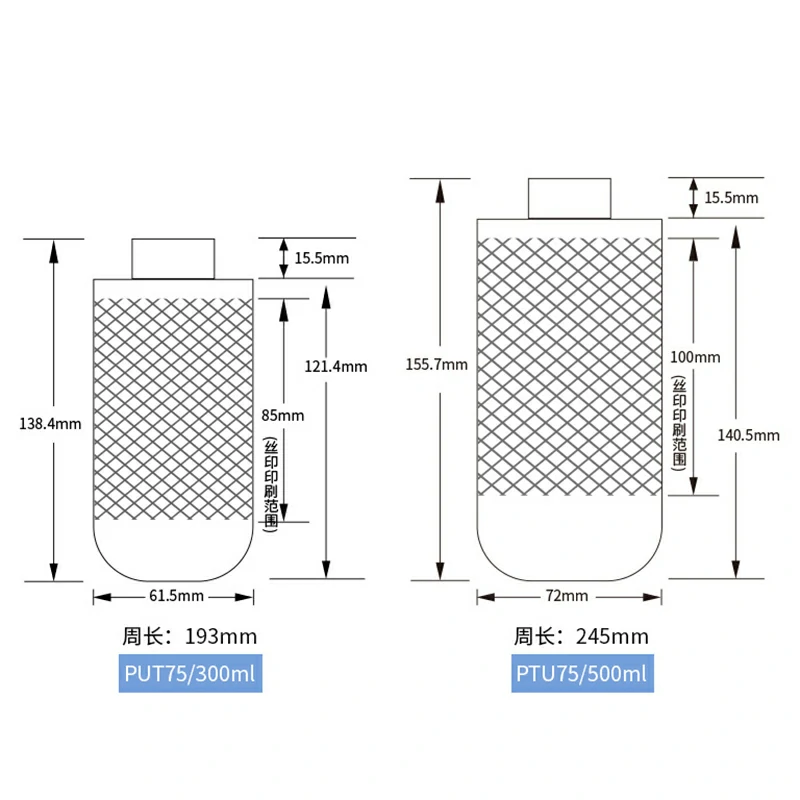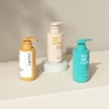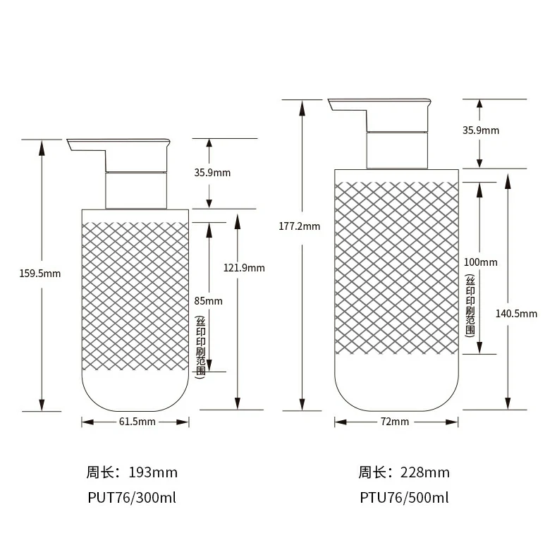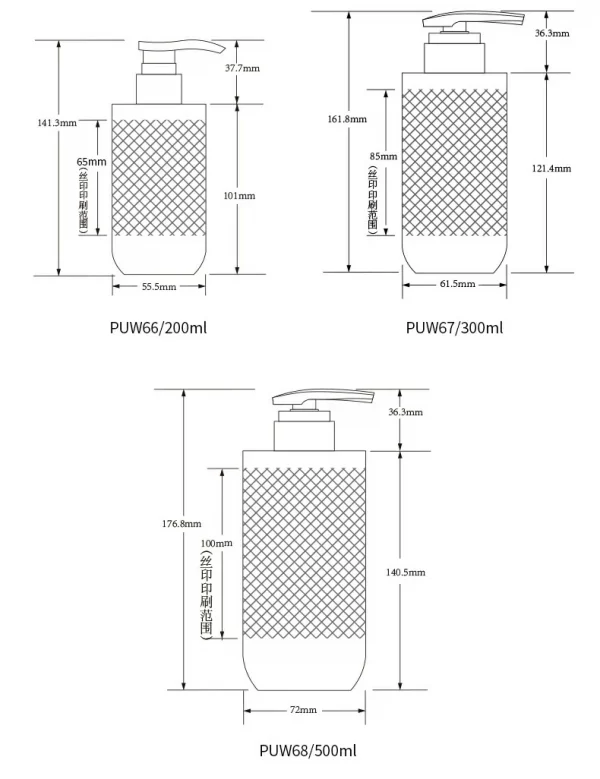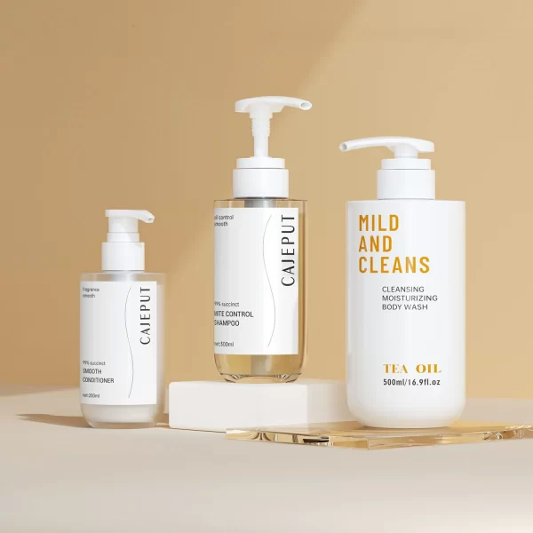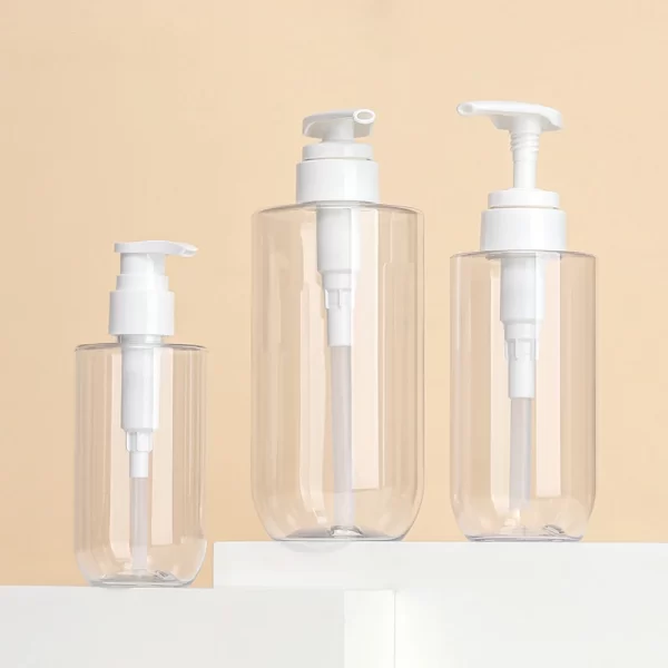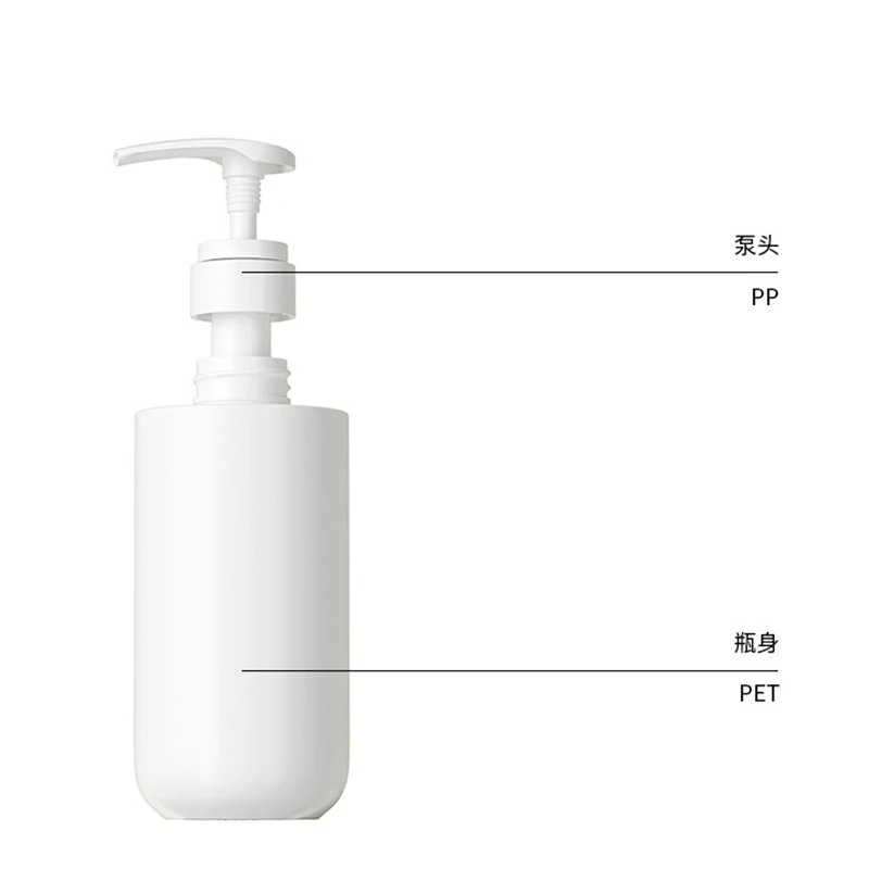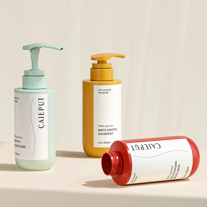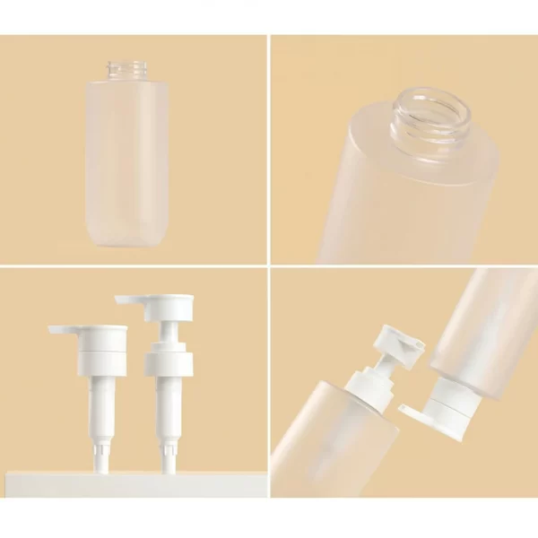 Large-capacity shower gel and shampoo bottles ranging from 300-500ml, as well as 200ml hair care dispensers and hand soap bottles