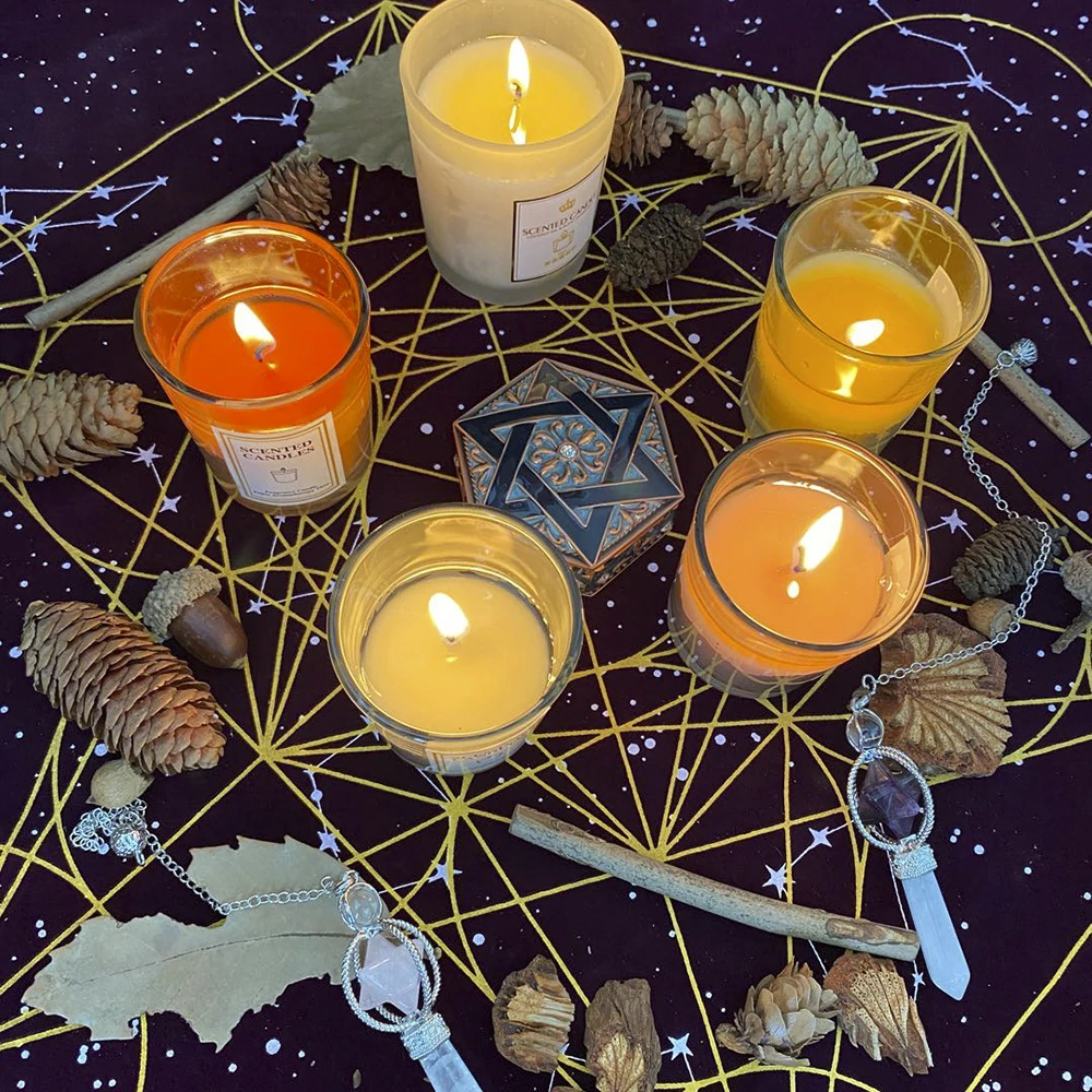 New pentagram single candle holder wooden DIY candle stand disc ornament ceremonial accessories altar