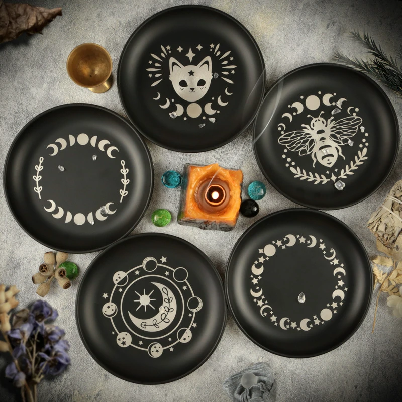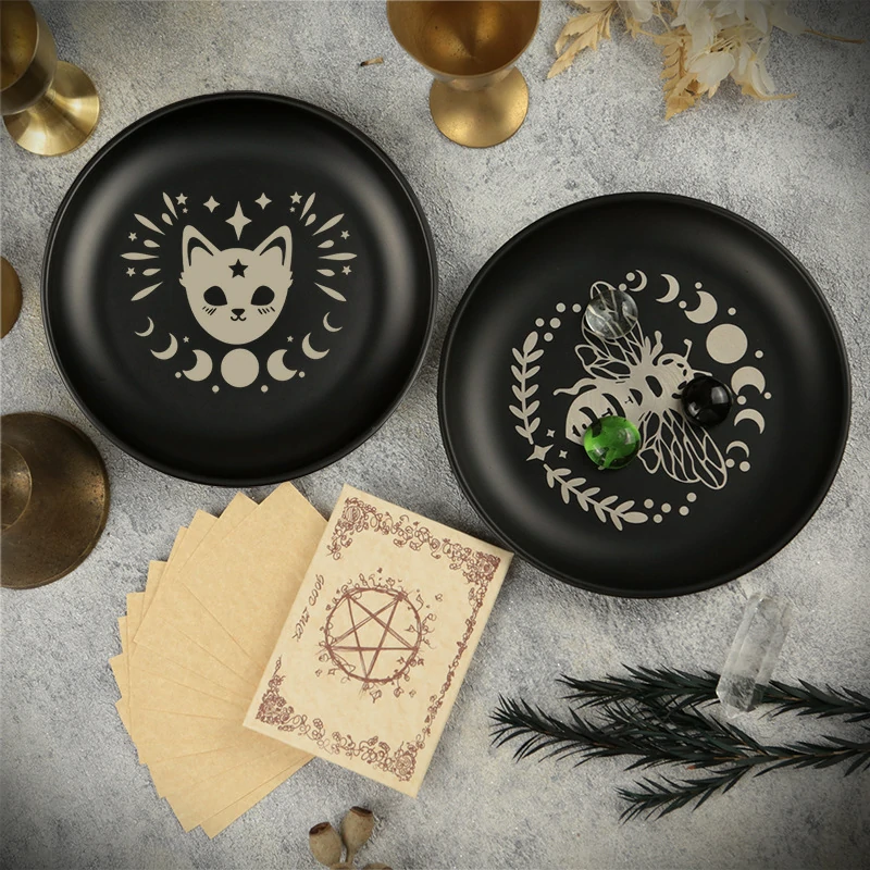 New 14cm Black Cat Stainless Steel Plate, Metal Candlestick, Crystal Steel Plate, Ritual Meditation Plate, Herbal Tray, Decorative Plate