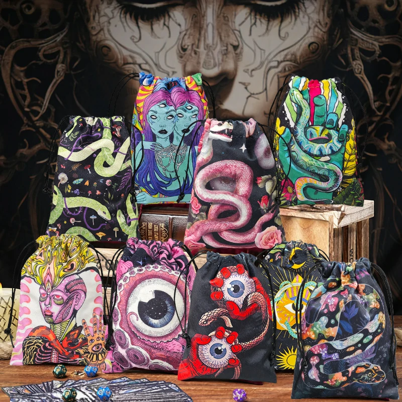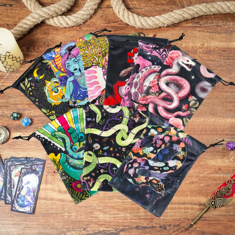 New Colorful Animal Snake Velvet Bag Card Speed Pocket Tarot Card Storage Bag Crystal Gem Gift Bag