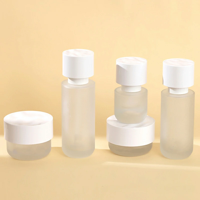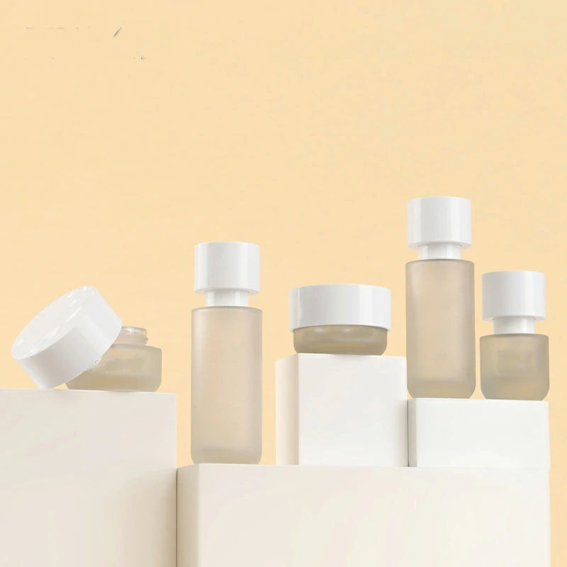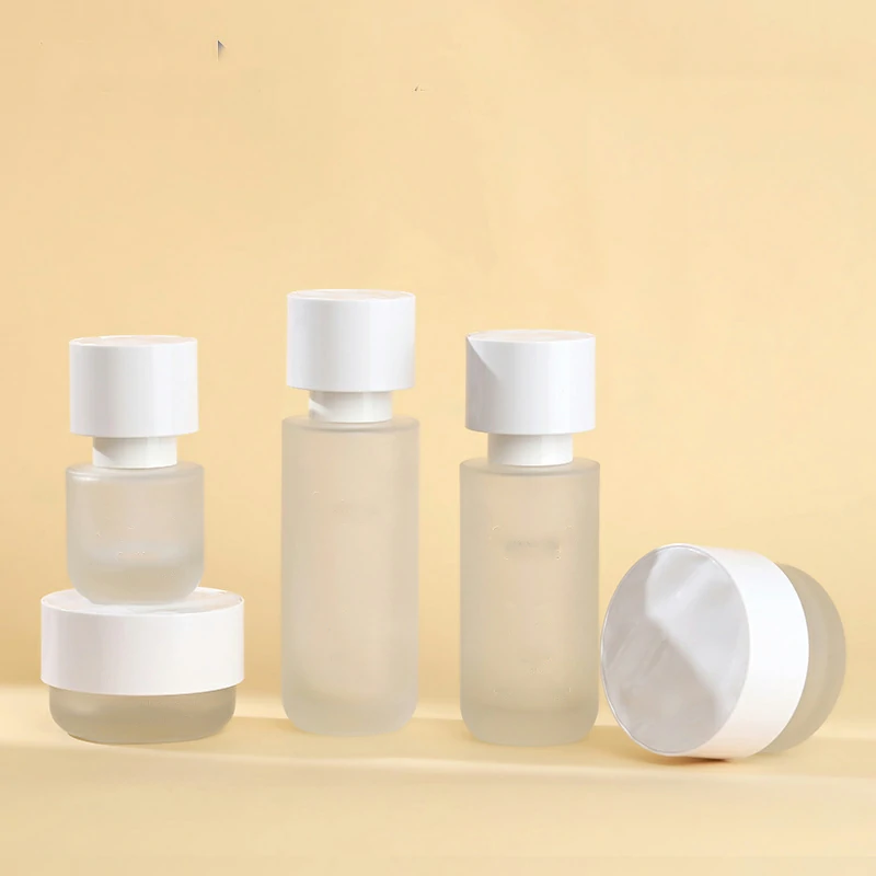 New cosmetics glass set bottle 30ml/100ml lotion press bottle frosted 30-50g cream bottle packaging material