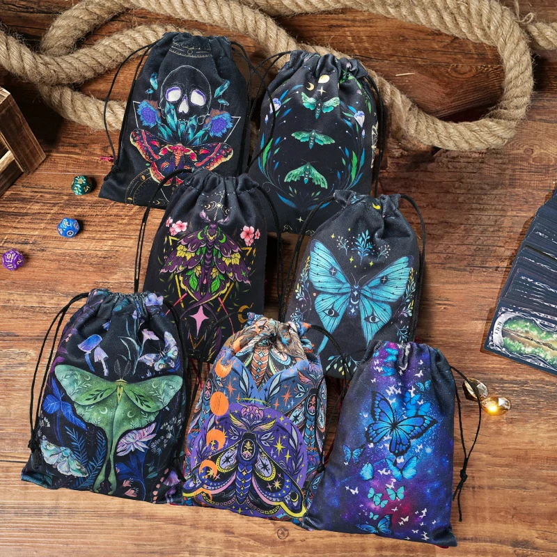 new double-sided color printed butterfly velvet cloth bag, animal card speed pocket, tarot bag, storage bag, gift bag