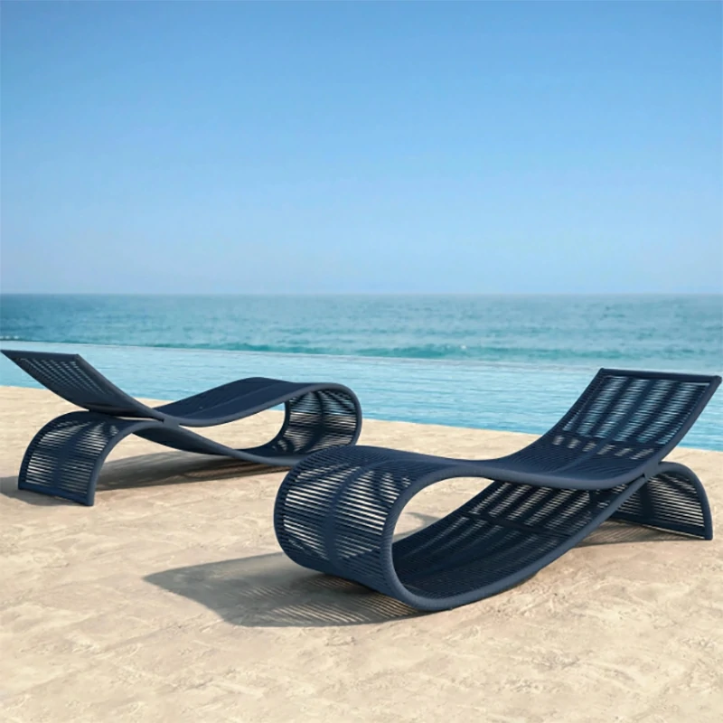 Outdoor bedding, hotel pool, rattan woven outdoor lounge chair furniture