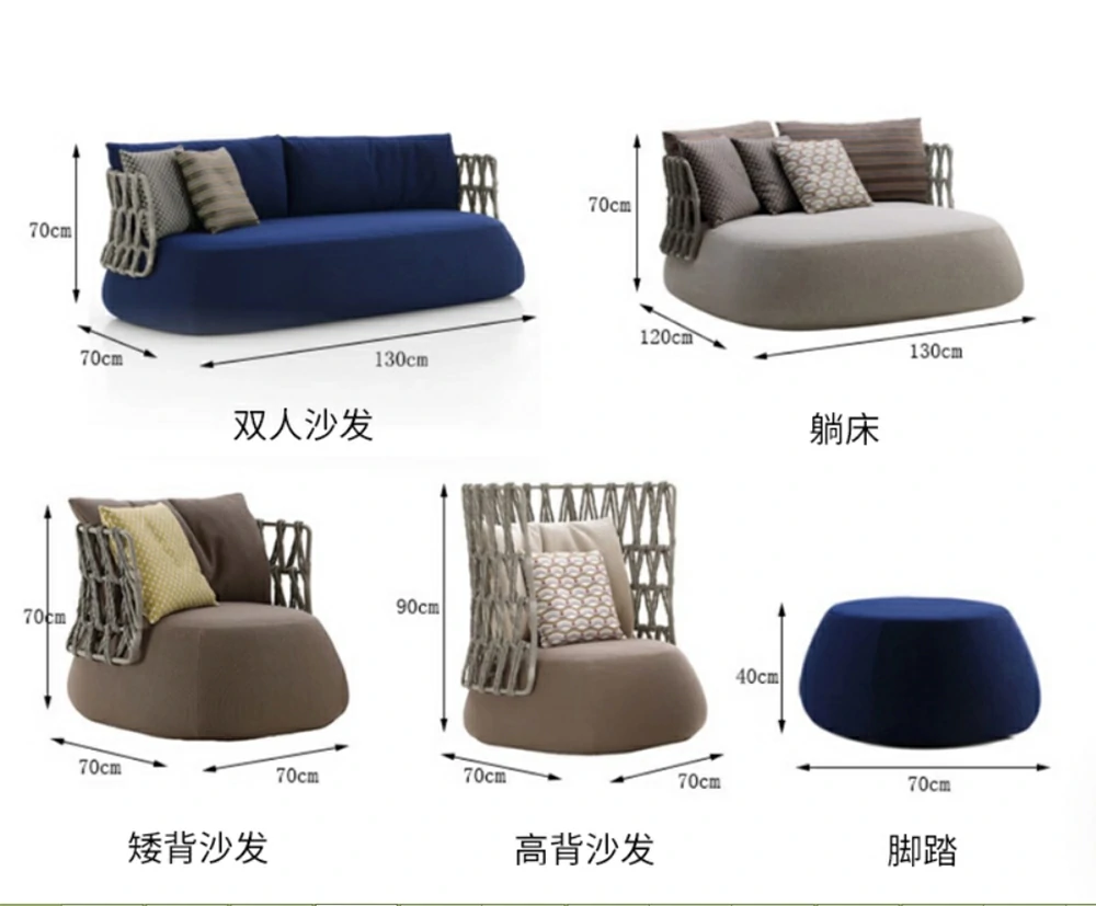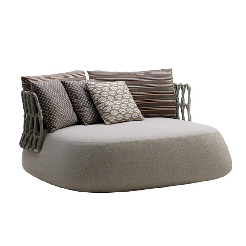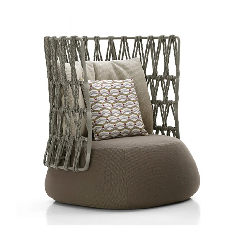 The backrests and armrests showcase precision-crafted grid-pattern rope weaving, offering both visual texture and structural flexibility for comfortable outdoor lounging. - Breathable All-Weather Materials