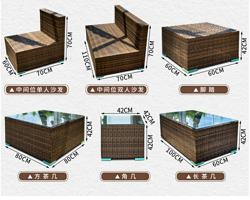 Outdoor furniture rattan sofa Nordic rattan woven sofa balcony woven rattan sofa chair outdoor three piece set combination