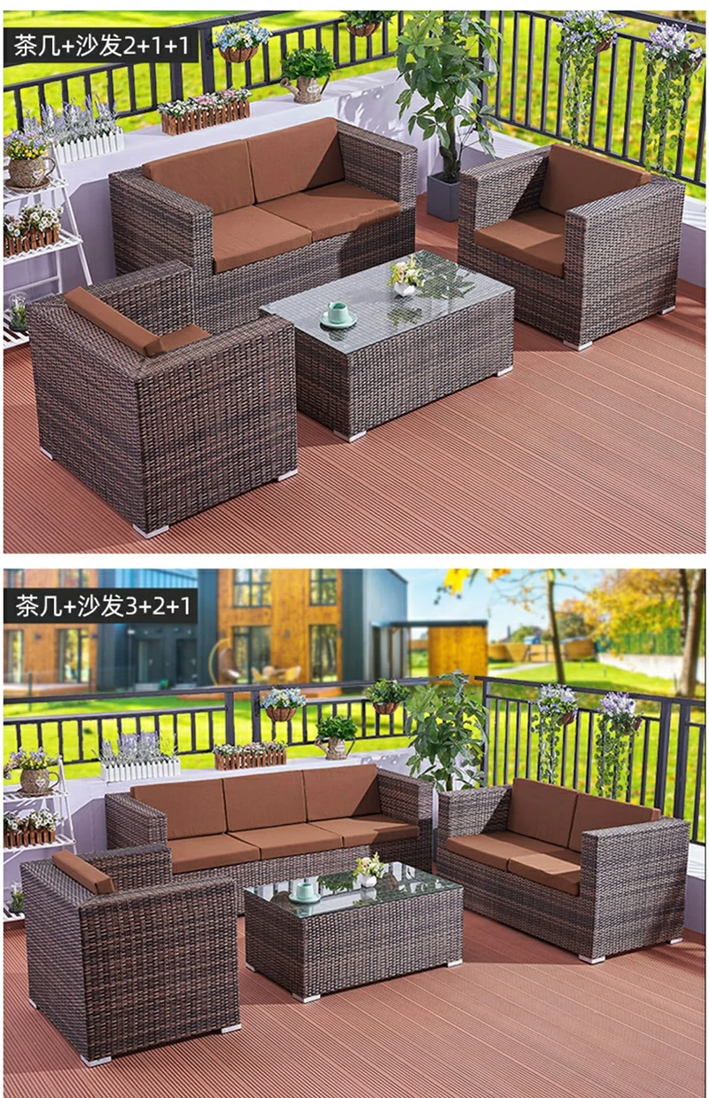 Outdoor furniture rattan sofa Nordic rattan woven sofa balcony woven rattan sofa chair outdoor three piece set combination