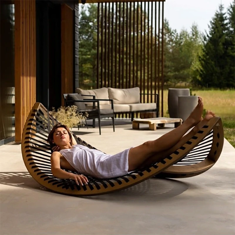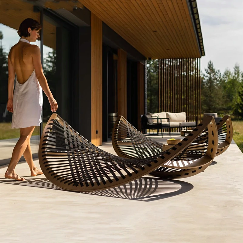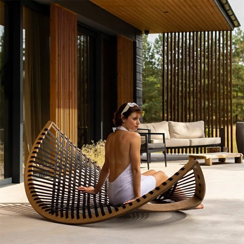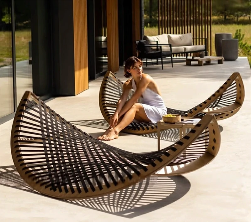 Outdoor scenic area, lying bed, rattan weaving, teak wood courtyard, outdoor terrace, waterproof swimming pool, waterproof lounge chair furniture