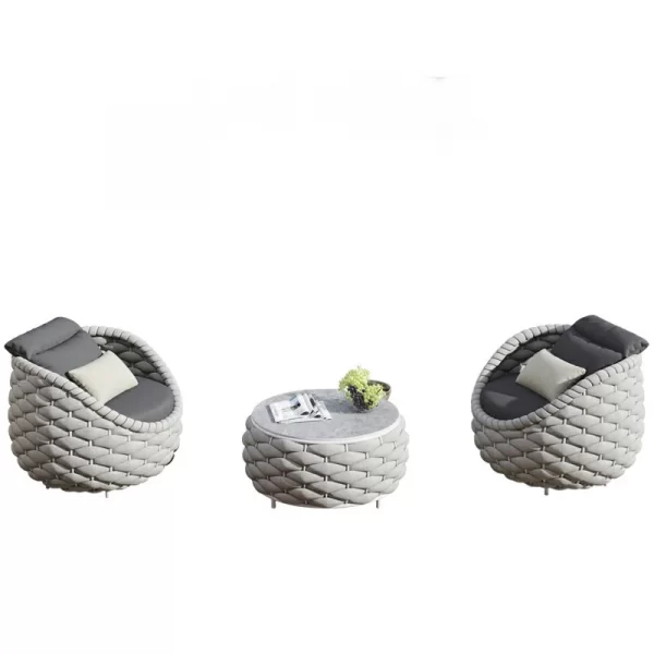 The synthetic rope weaving and quick-dry foam cushions ensure superior airflow and weather resistance, maintaining comfort and appearance through seasons of use.