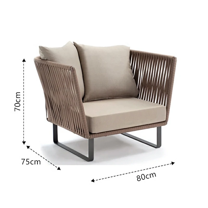 The backrests and armrests showcase precision-crafted grid-pattern rope weaving, offering both visual texture and structural flexibility for comfortable outdoor lounging. - Breathable All-Weather Materials