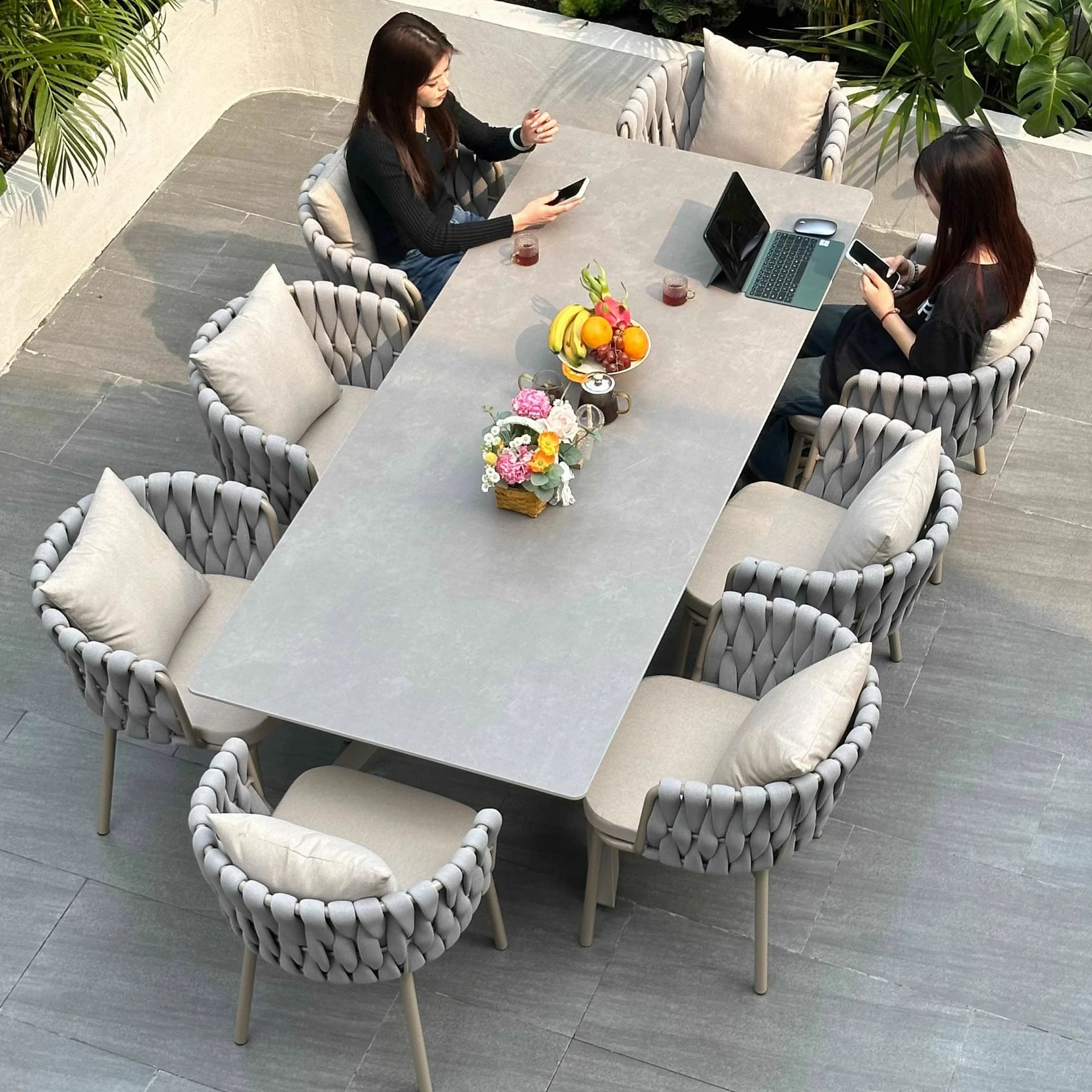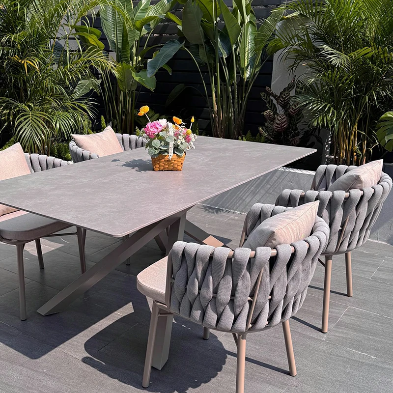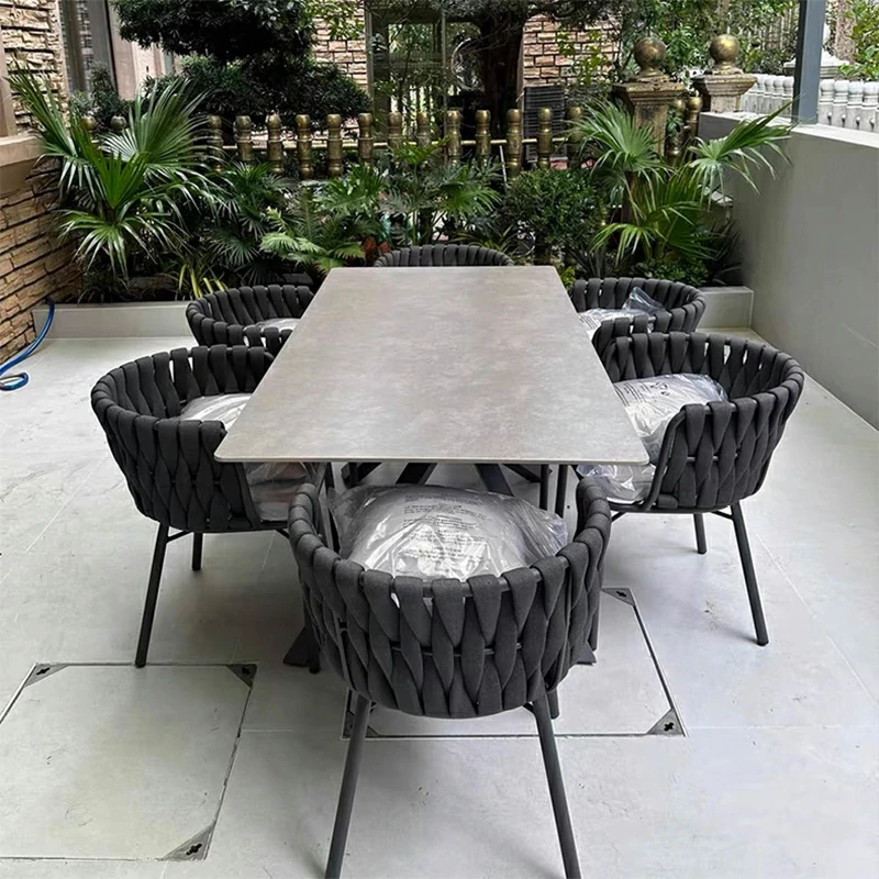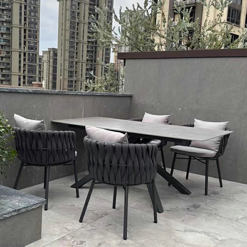 Outdoor tables chairs courtyards outdoor waterproof and sunscreen rattan furniture, high-end outdoor gardens, balconies, rock slabs, dining tables, rattan chairs