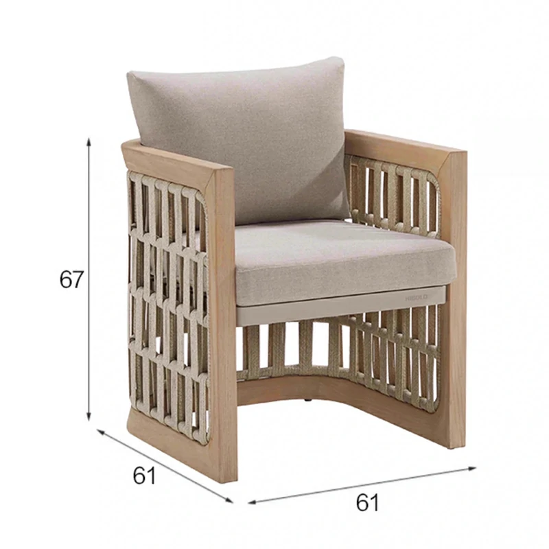 The backrests and armrests showcase precision-crafted grid-pattern rope weaving, offering both visual texture and structural flexibility for comfortable outdoor lounging. - Breathable All-Weather Materials