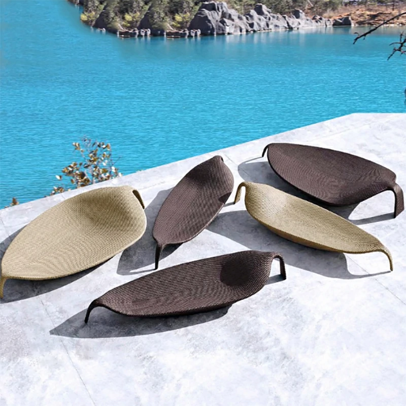 Outdoor vacation, lying bed, lounge chair, hotel balcony, leisure rattan chair, outdoor villa, swimming pool, garden, rattan woven beach chair