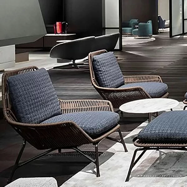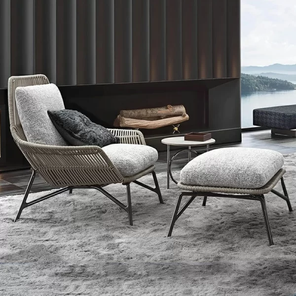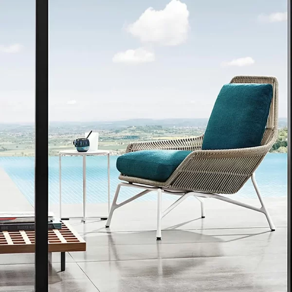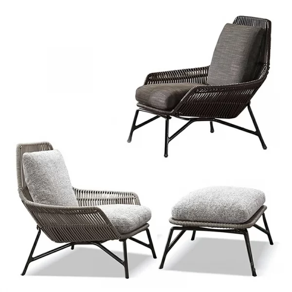 The backrests and armrests showcase precision-crafted grid-pattern rope weaving, offering both visual texture and structural flexibility for comfortable outdoor lounging. - Breathable All-Weather Materials