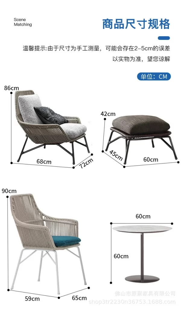 Outdoor Vine Chair Tea Table Three Piece Set Combined Courtyard Garden Outdoor Balcony Leisure Rope Set Single Sofa Chair