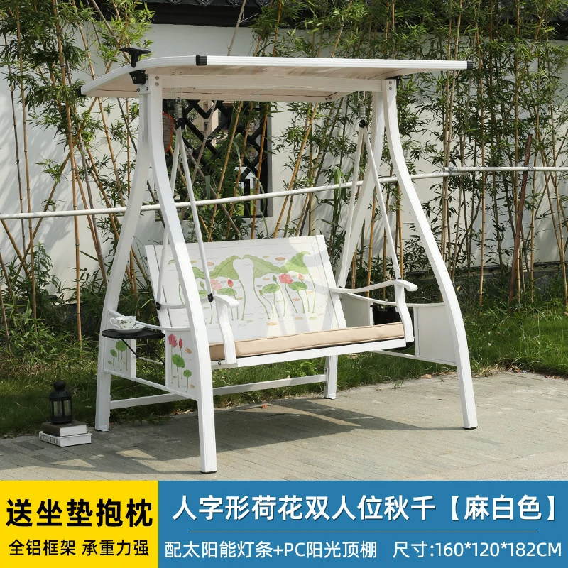 Outdoor white double swing rocking chair iron hanging chair swing outdoor home courtyard garden balcony cast aluminum rocking chair