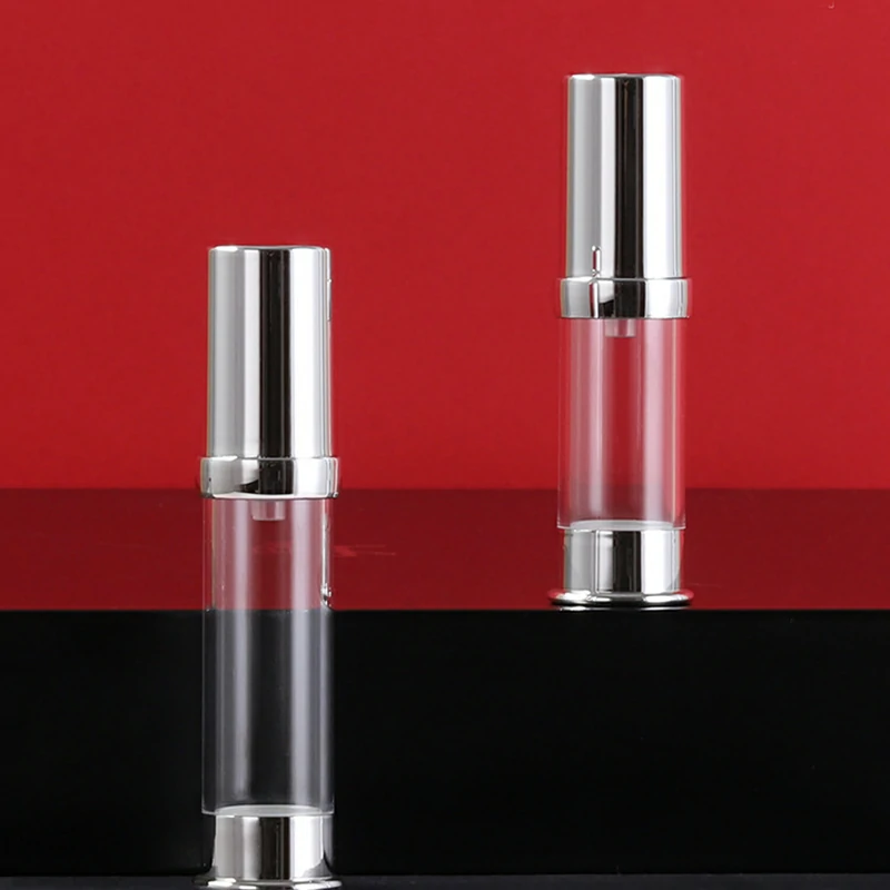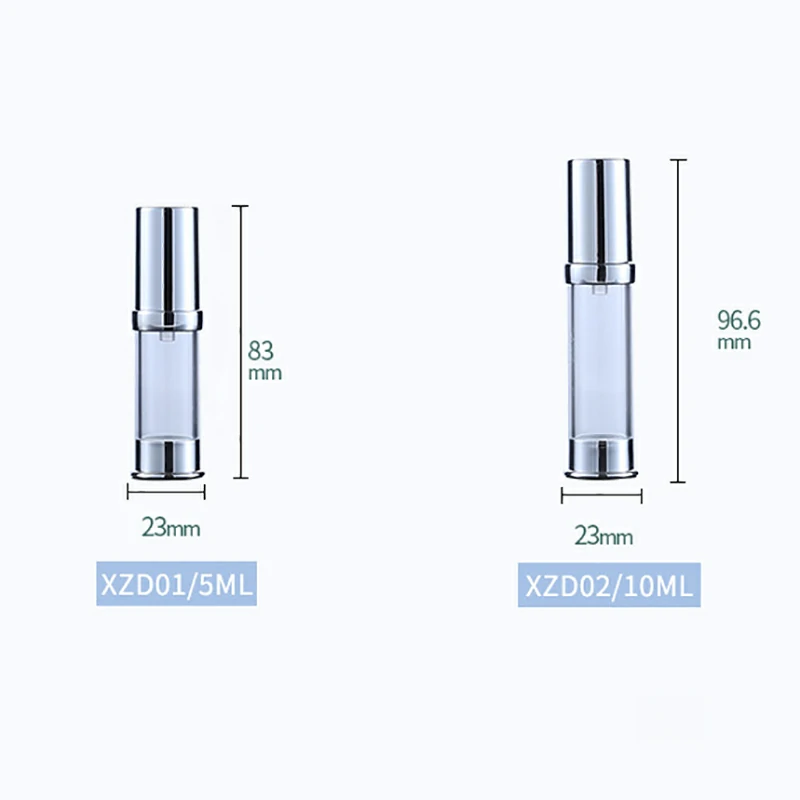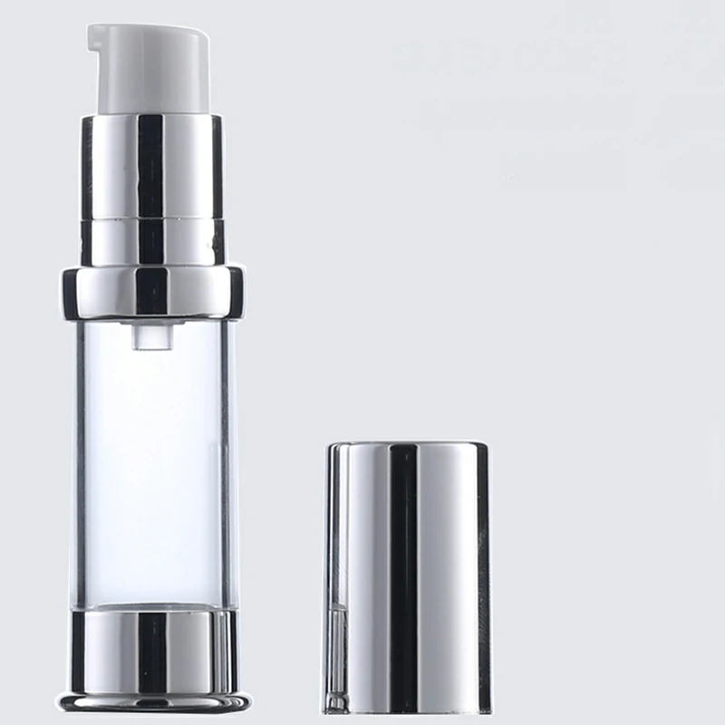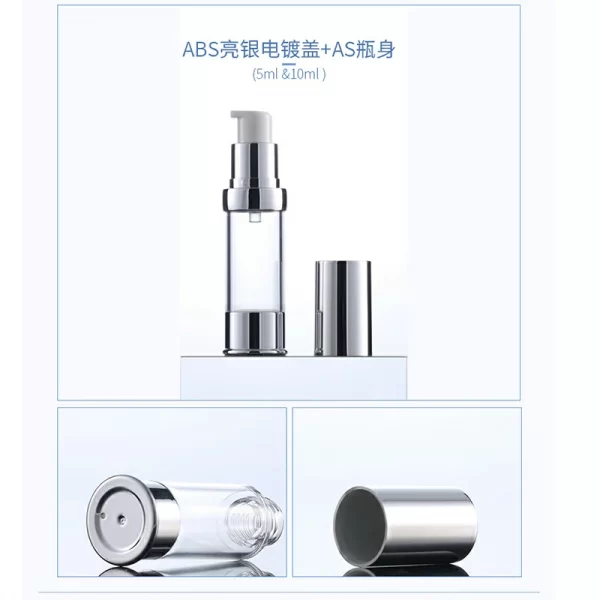 Packaging Customized small capacity vacuum bottle Sample portable packaging bottle 5-10ml bright silver lotion vacuum bottle