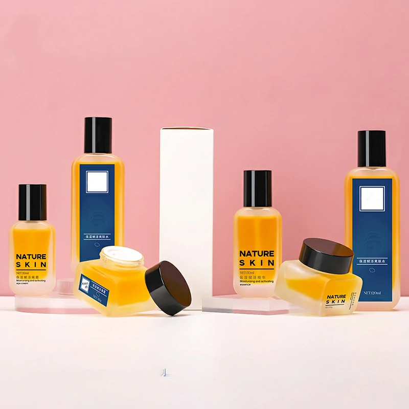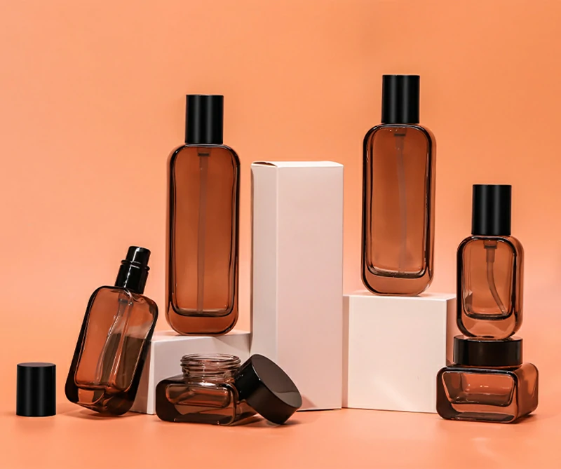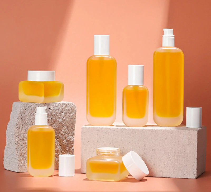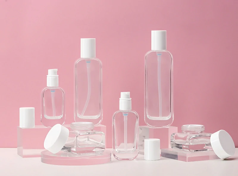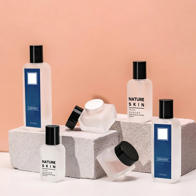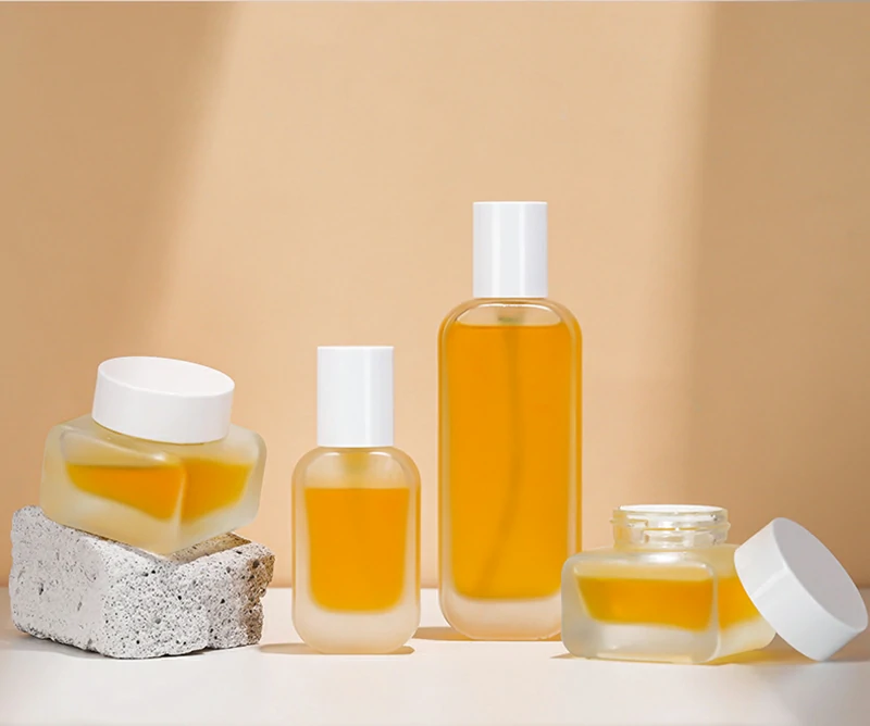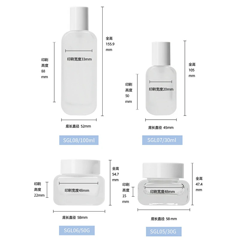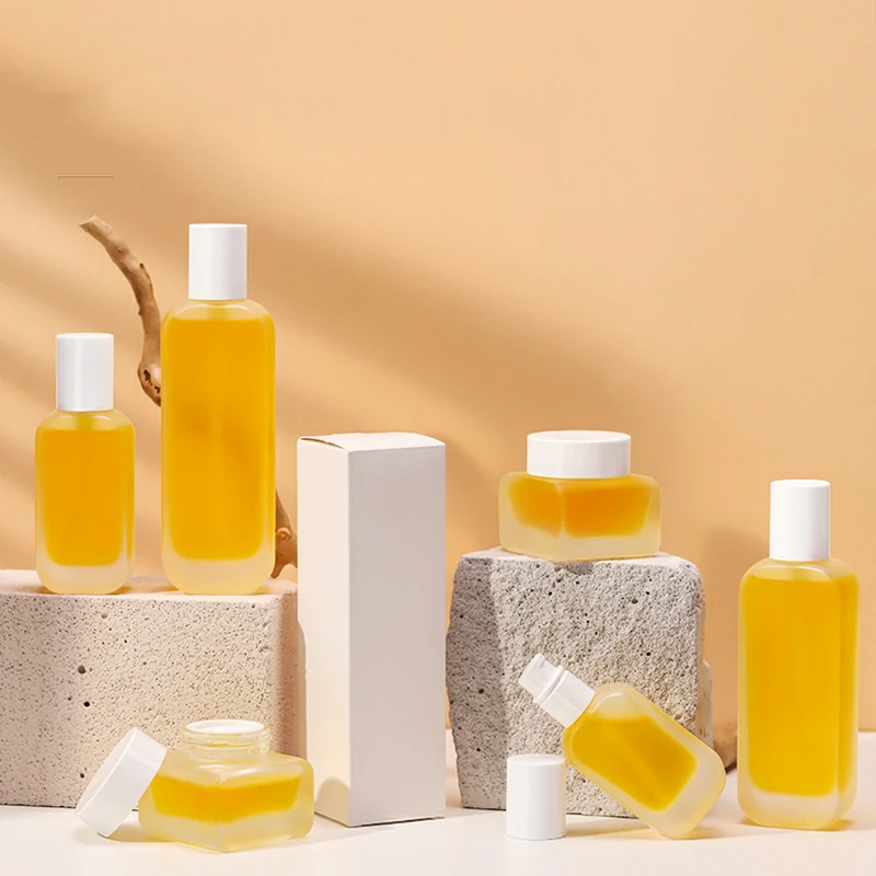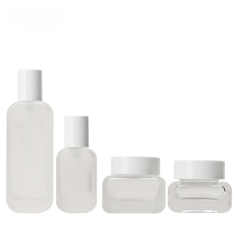 Packaging material Cosmetic glass set bottle 50g square transparent cream bottle 100ml frosted lotion bottle