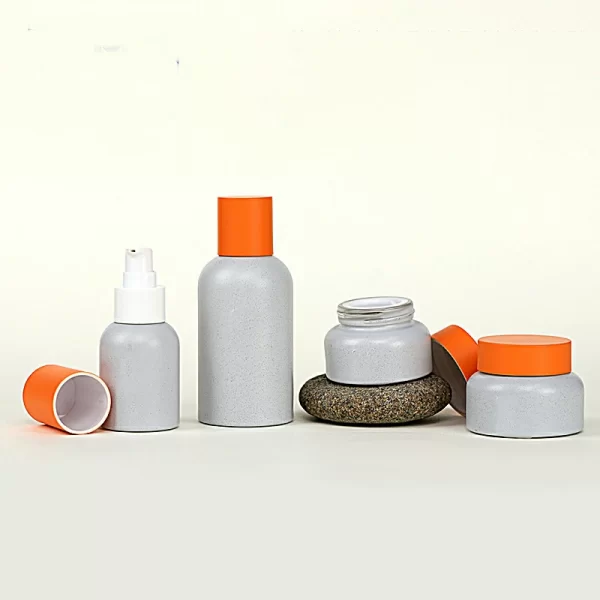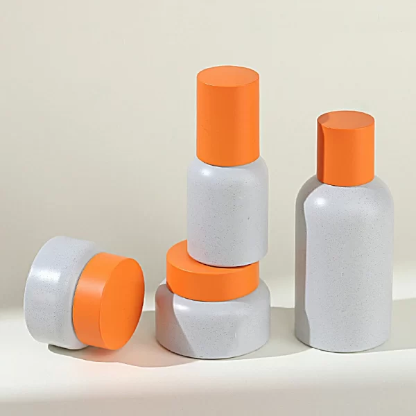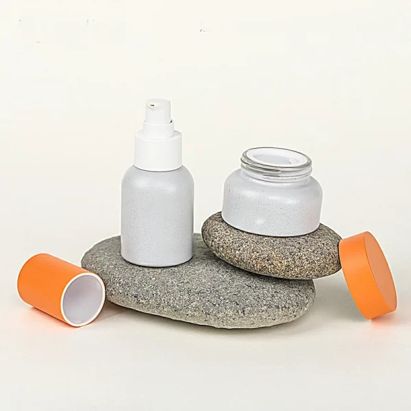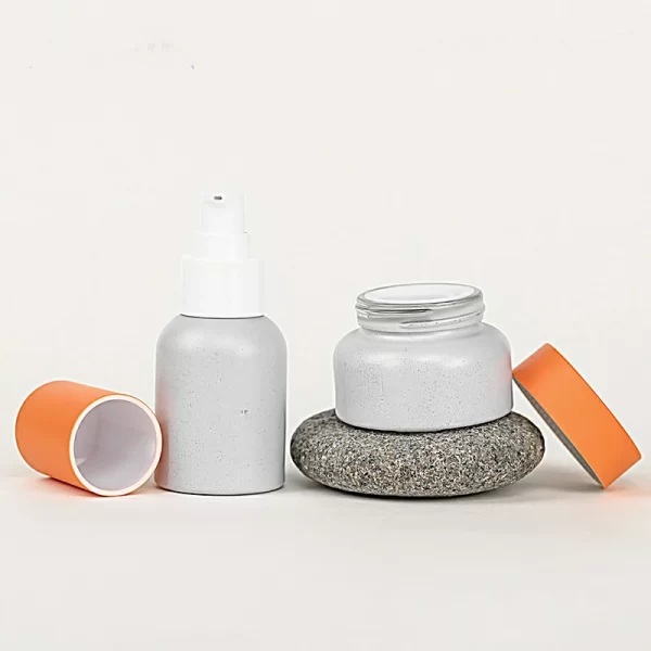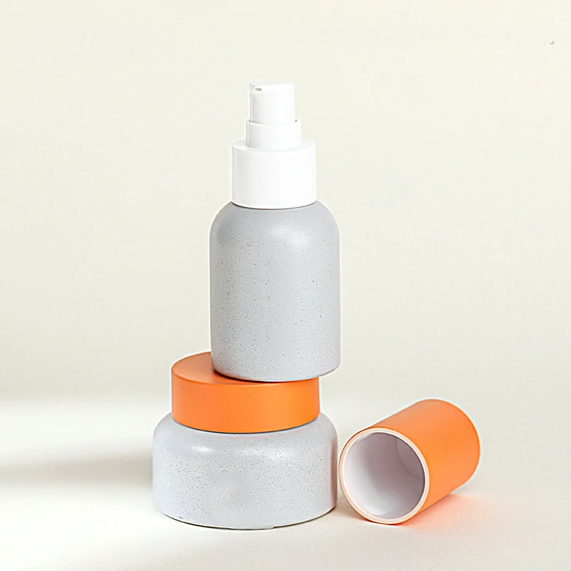 Processing customized imitation stone new process glass set bottle 30-50g cream bottle orange outer cap bottle white lotion bottle