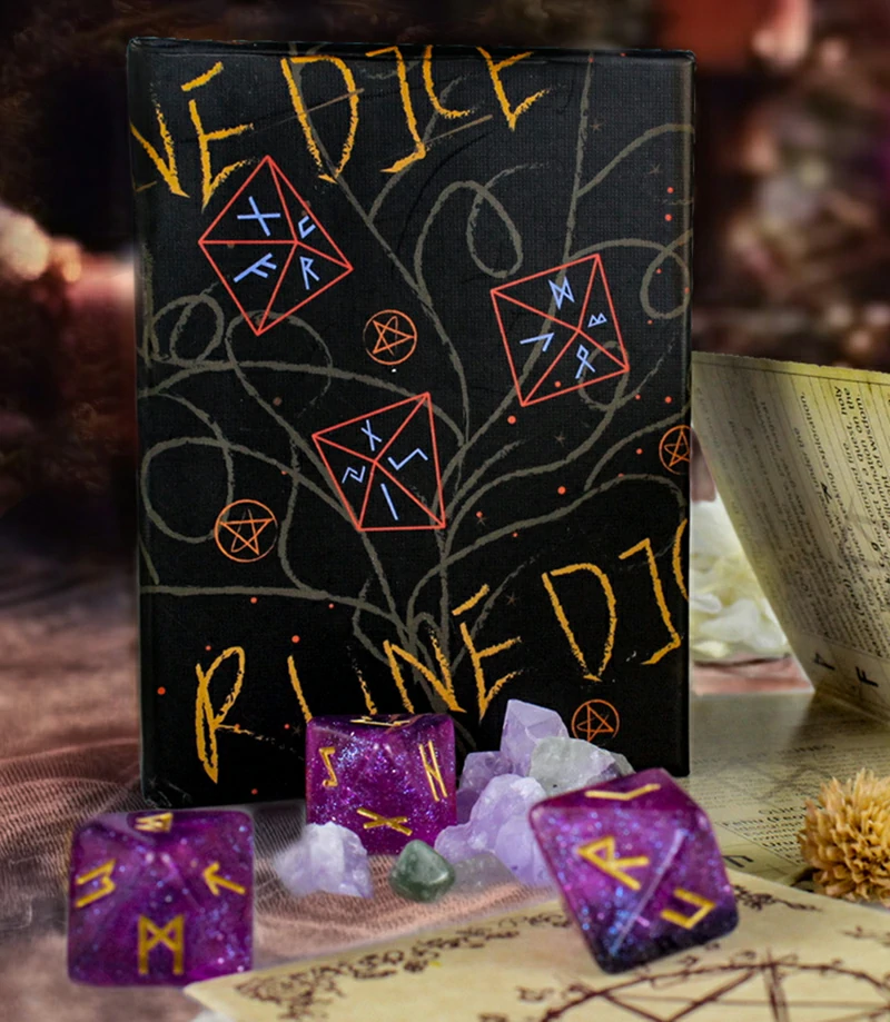 rune letter dice, eight sided dice, Viking rune dice, multi-faceted dice, resin rune dice, including instruction manual