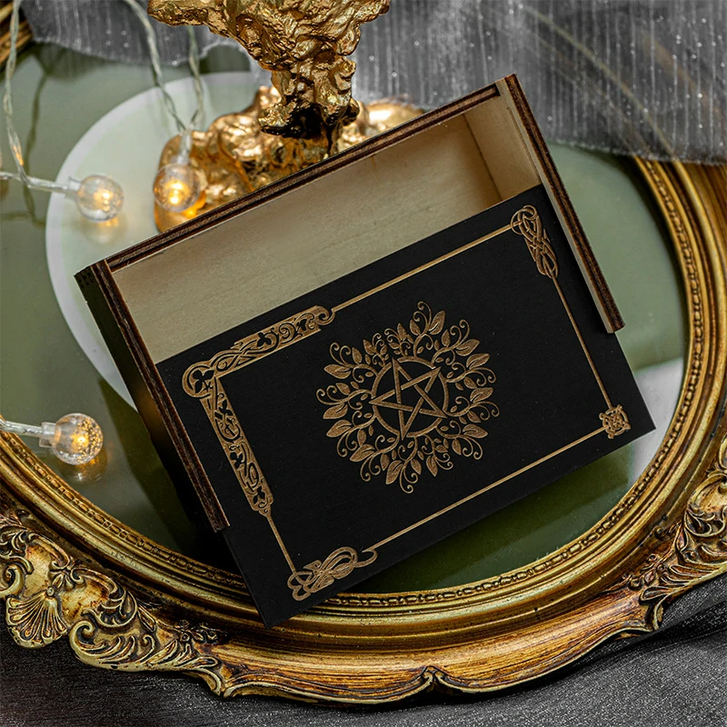 Tarot Card Storage Box Black Sliding Wooden Box Storage Box Gift Box Wooden Box Tarot Card Storage Box