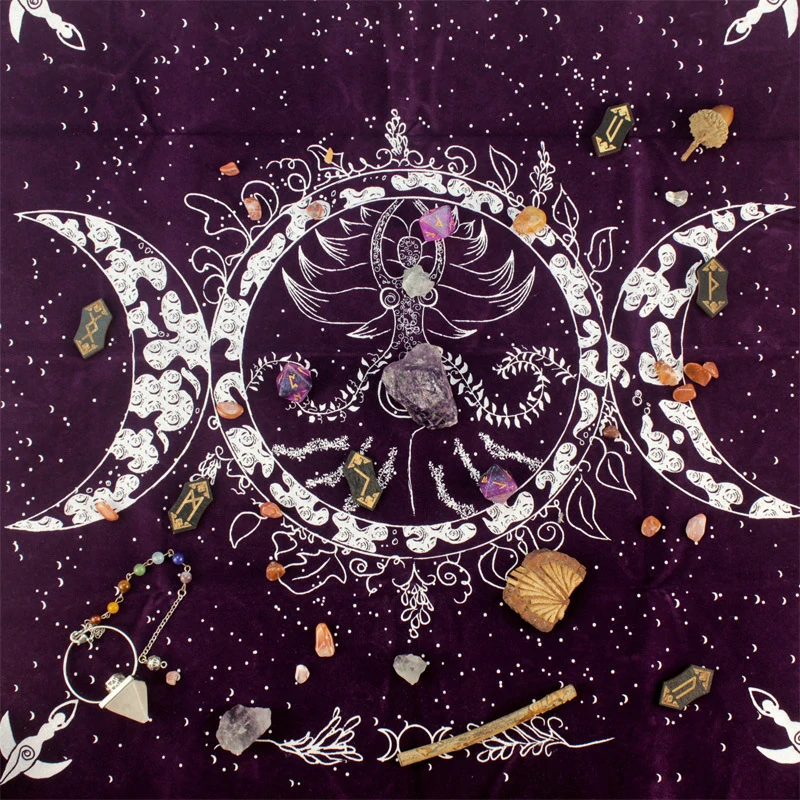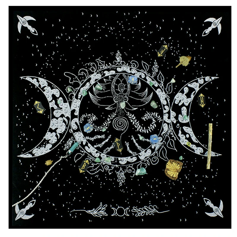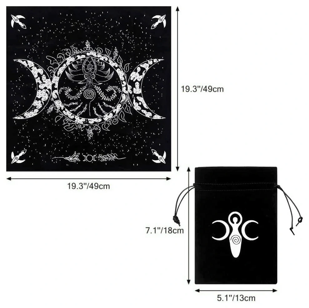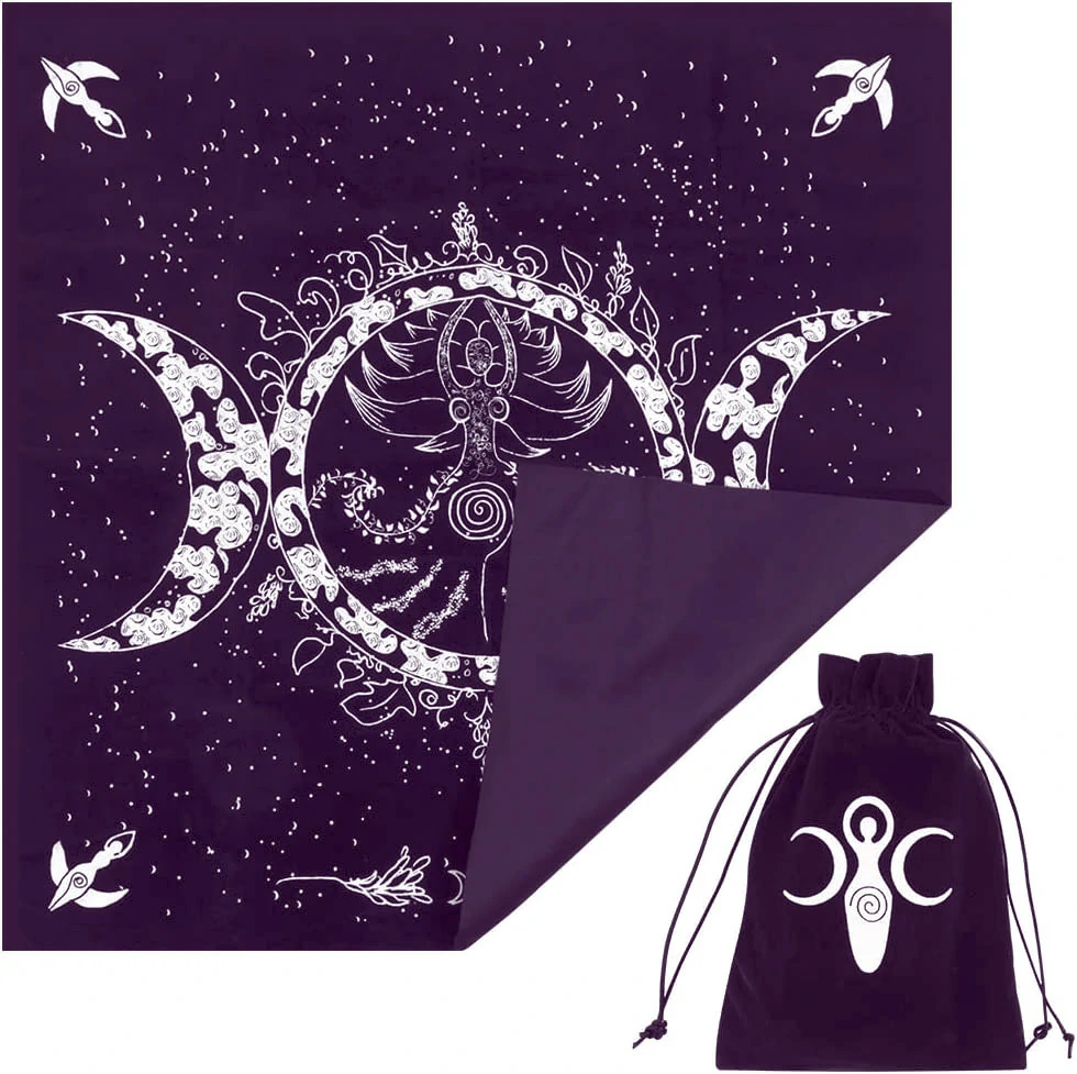 Three phase Moon Goddess Tarot Card Oracle Card Tablecloth Set with 2-piece Cloth Bag Tarot Card Moon Tablecloth Tapestry