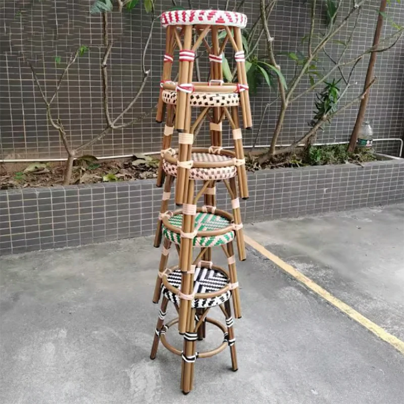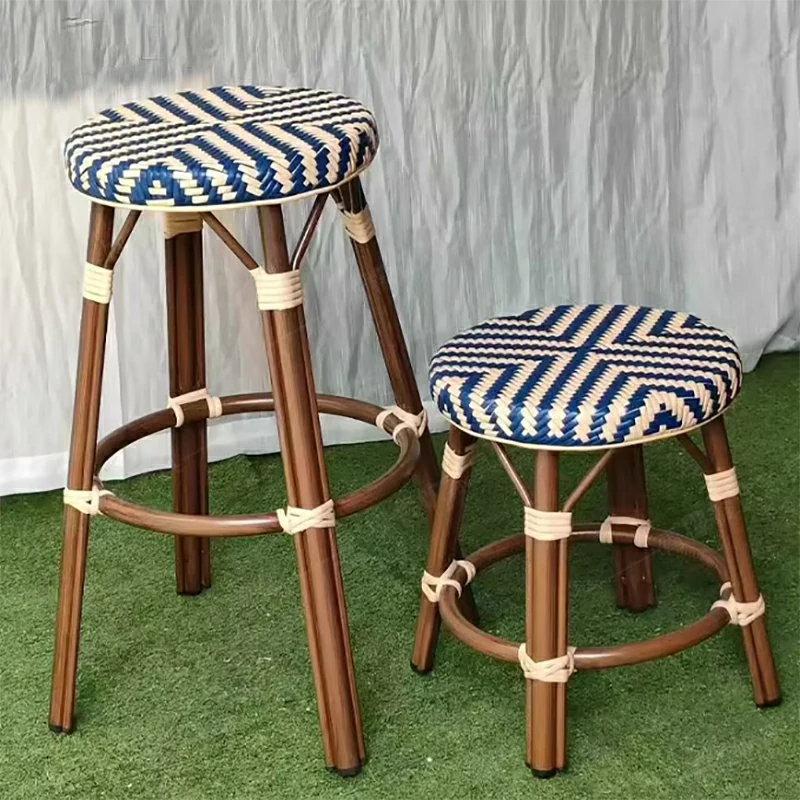 Vintage bar stool, bar chair, bar counter rattan chair, high foot chair, French dining chair, outdoor coffee shop, casual rattan chair