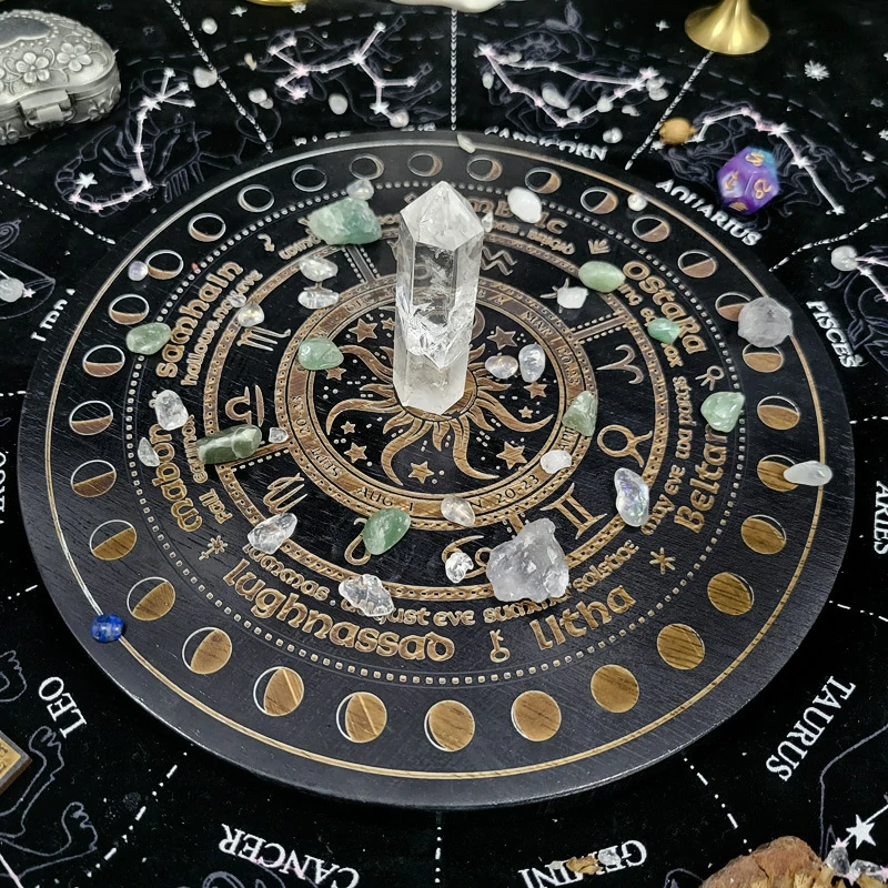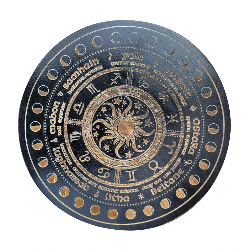 Wheel of Year Calendar Wheel Sun Moon Ins Wind Oak Carving Home Decor Wooden Plate
