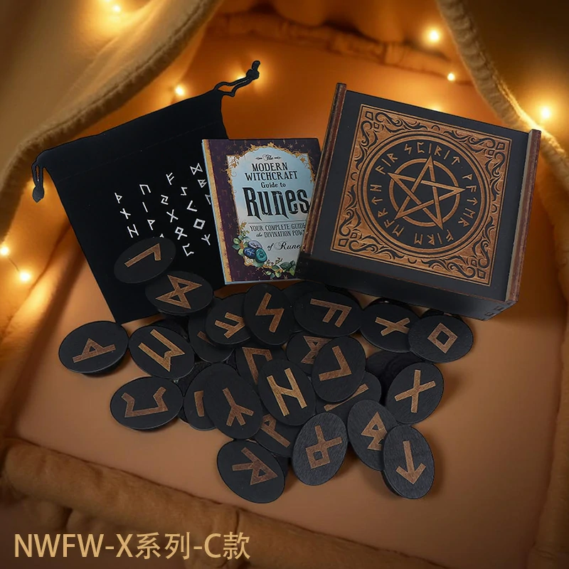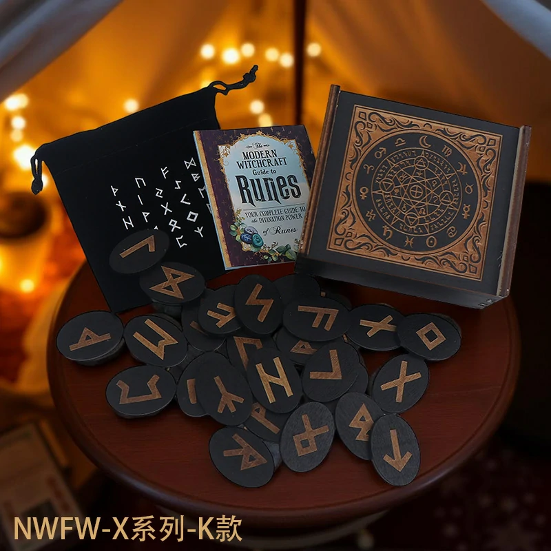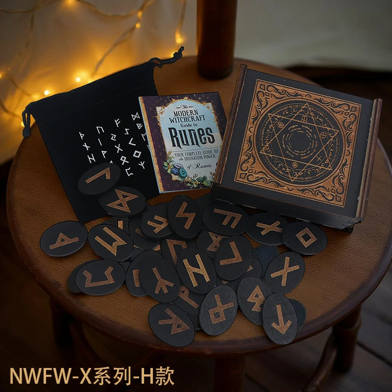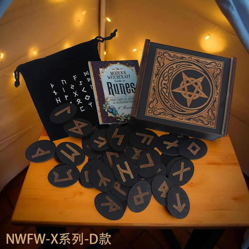 Woodcut Runes Symbol Set Carving Push Pull Wooden Box Like Niven Set Black Symbol Runes Like Niven