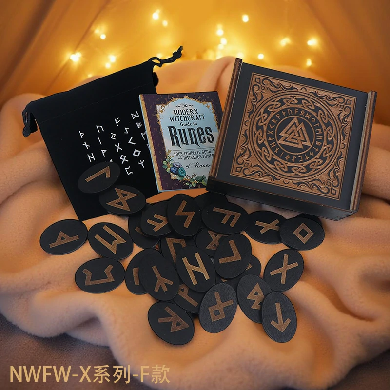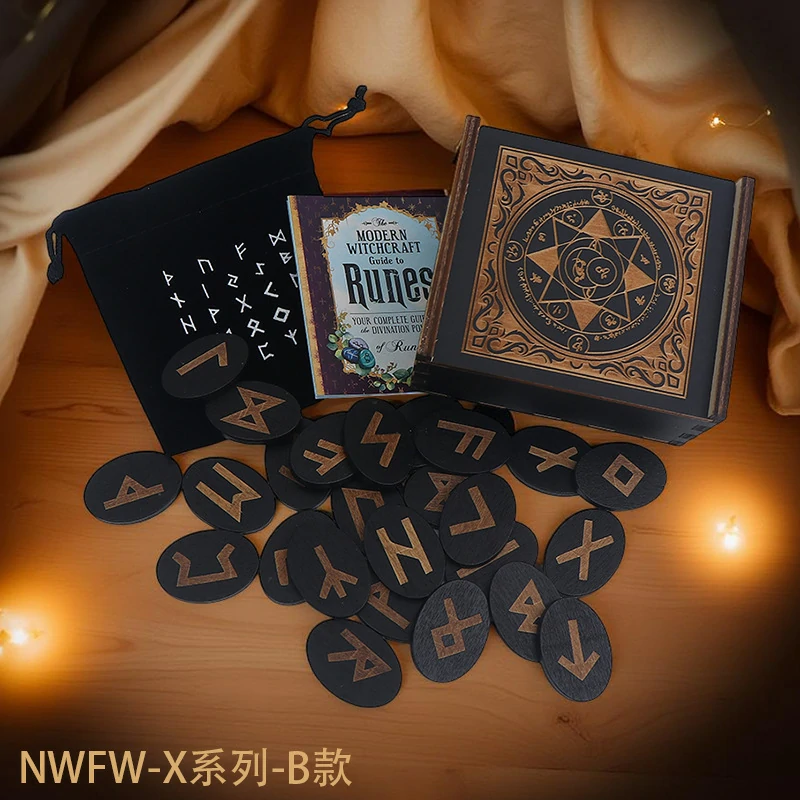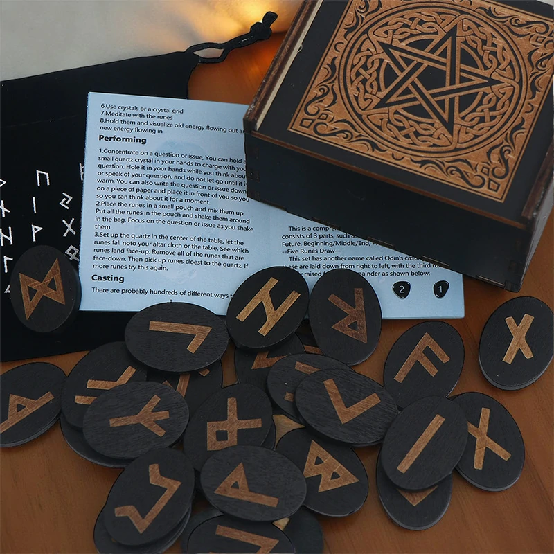 Woodcut Runes Symbol Set Carving Push Pull Wooden Box Like Niven Set Black Symbol Runes Like Niven